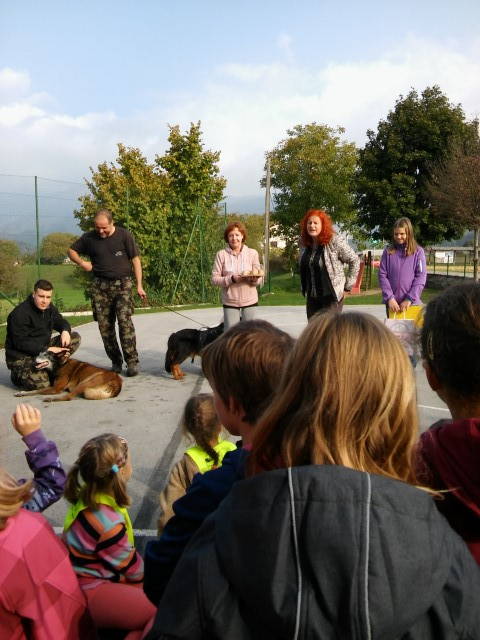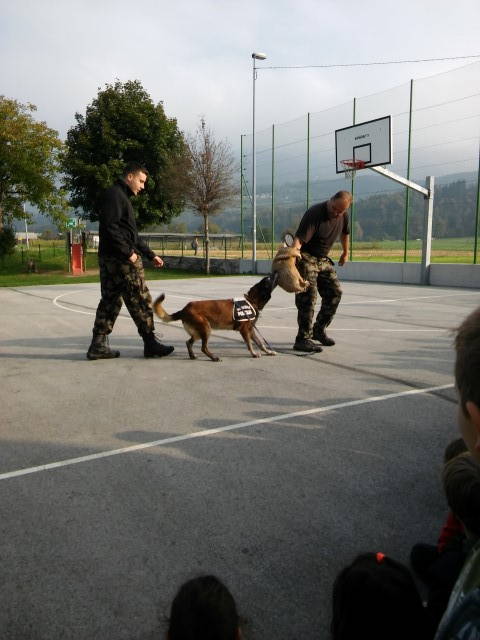 Četrtek – gostili smo študenta zootehnike Gaberc Žiga in njegova starša. Z dvema kužkoma je predstavil trening obrambe delovnega/službenega psa ter trening poslušnosti.