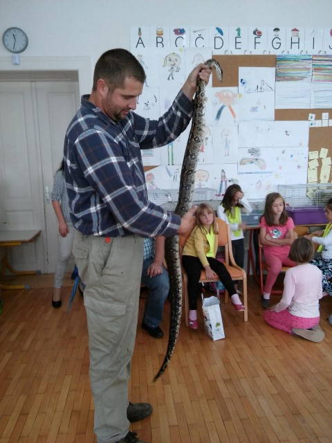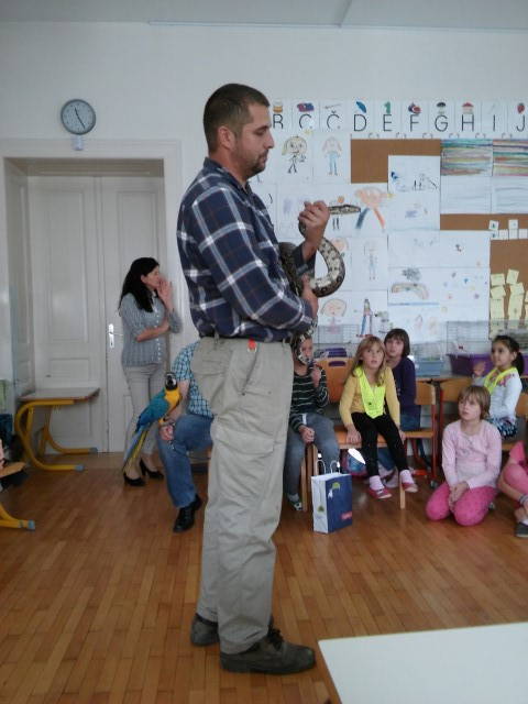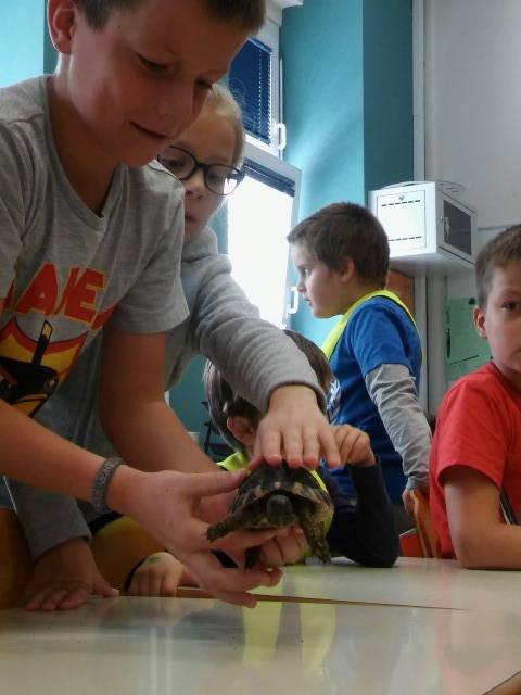Petek – ta dan smo imeli veliko gostov. Učenci so lahko v šolo prinesli svoje hišne ljubljenčke in nam jih predstavili. Spoznali so zajčke, želvice, morskega prašička, hrčka, aro, udava in agamo.