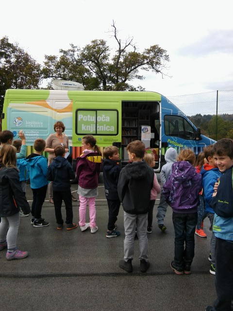 Sreda – obiskala nas je potujoča knjižnica in skupaj smo preživeli pravljično uro z go. Sabino Zore iz Knjižnice Franceta Balantiča Kamnik.