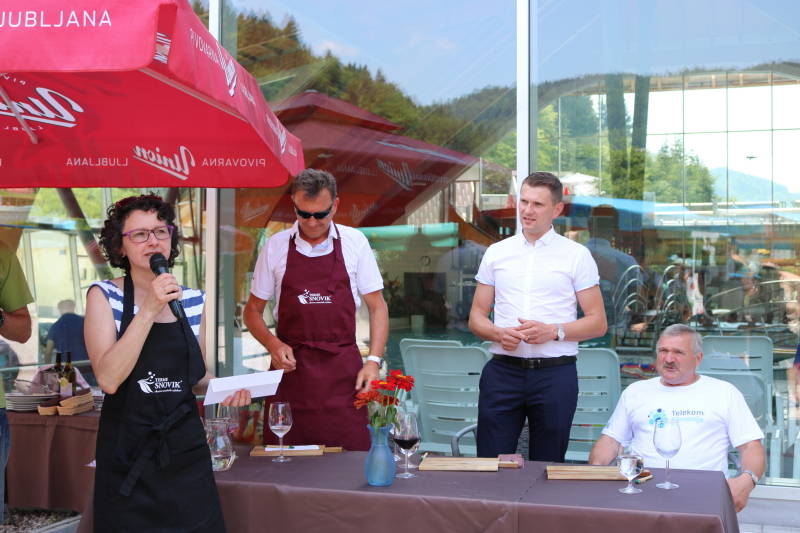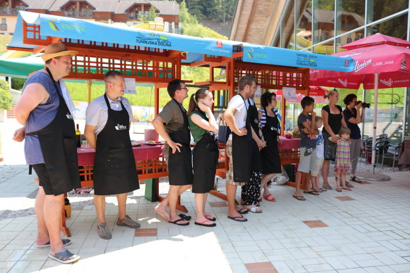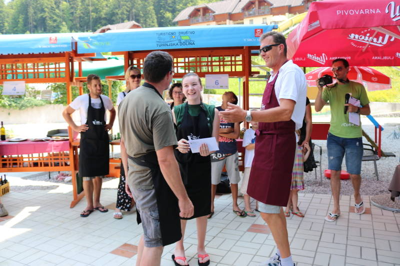 Tekmovanje v pripravi postrvi se je uradno začelo ob deseti uri, ob 11-ih pa so tekmovalke in tekmovalci prevzeli sestavine za kuho in pričeli z zabavnim tekmovanjem in druženjem. Letos se je prijavilo šest zelo različnih ekip iz okoliških krajev, ki so poskrbele za pravcate gurmanske mojstrovine. In kot nam je povedal Tomaž, eden od tekmovalcev, mu je pri vsem najbolj všeč, da se ljudje tukaj družijo, spoznavajo in seveda tudi kaj dobrega skuhajo, pojedo in popijejo.