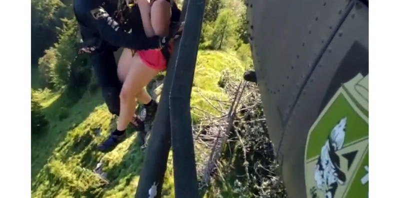 Kamnik, 05.07.2020; Ob 15.42 sta na Veliki planini, občina Kamnik, planinca zašla s poti, ki vodi čez Gabrsko peč in Steno ter obtičala na nedostopnem terenu. Gorska reševalca GRS Kamnik sta ju našla in zavarovala, helikopter Slovenske vojske z dežurno ekipo za reševanje v gorah pa ju je z vitlom dvignil in prepeljal v dolino.