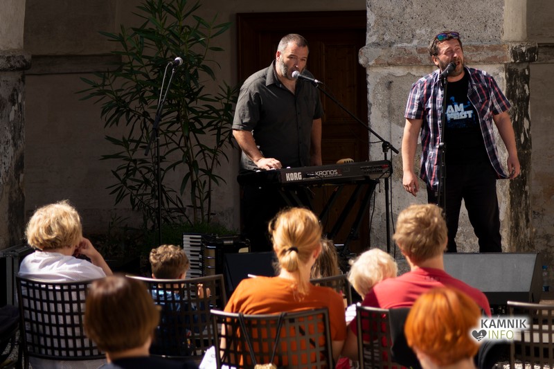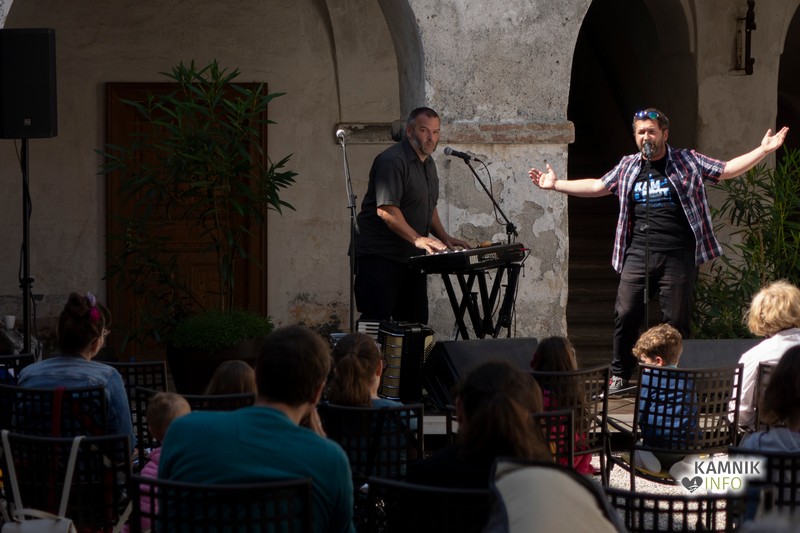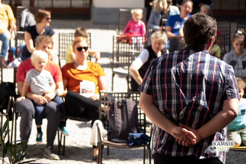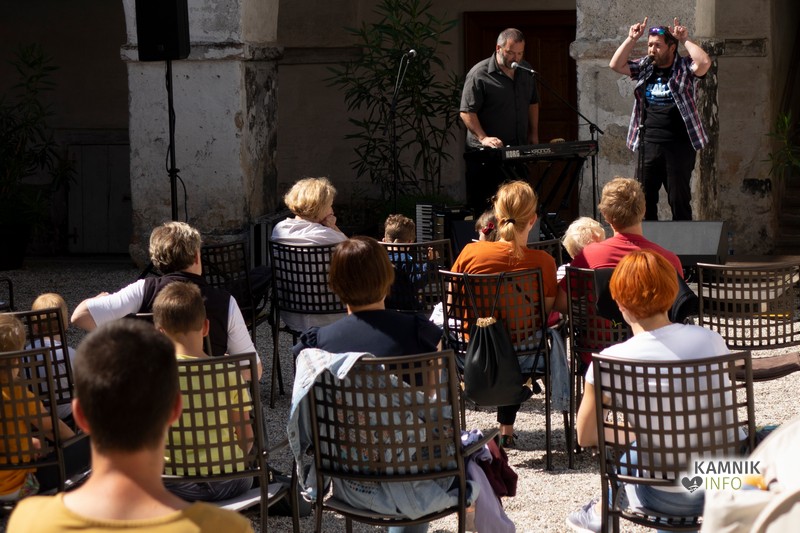 Tako se je danes dopoldan v samostanu Mekinje odvil dogodek, namenjen prav najmlajšim: Vroča župa, ki jo sestavljata pripovedovalec Rok in inštrumentalist Goran.