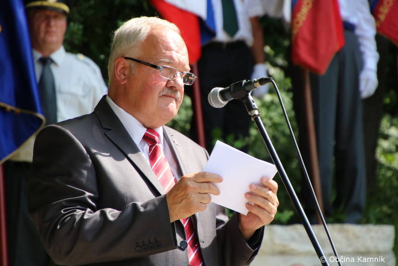 Župan Marjan Šarec, ki je ob tej priložnosti iz rok častnega predsednika Združenja borcev za vrednote NOB Kamnik Matevža Koširja prejel zlato plaketo Zveze Združenj borcev za vrednote NOB Slovenije, je na tem mestu dejal: »Spoštovane tovarišice in tovariši, spoštovane gospe in gospodje, spoštovani častni gostje, dovolite mi, da vas še zadnjič v vlogi župana nagovorim na tej spominski slovesnosti, v spomin sodelovanja mnogih narodov, ki so se borili za osvoboditev izpod nacizma, fašizma in drugih totalitarizmov.