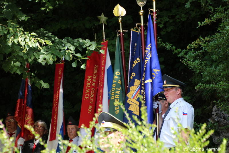 Slavnostni govornik, polkovnik Miha Butara pa je o dediščini narodnoosvobodilnega boja, o zgodovini bojev tako na Slovenskem kot tudi v Tuhinjski dolini v svojem govoru med drugim pripovedoval tudi o spominskih obeležjih: »Nedaleč od tega kraja je grobišče 192 borcem, padlim za svobod v teh krajih. Številni grobovi in 14 grobišč so nema priča tega, da so tukaj, na slovenskih zemlji, na območju občine Kamnik, pokopani številni borci in talci. 90 drugih obeležij pa priča o veličini narodnoosvobodilnega boja v občini. Še bi lahko našteval. Takšnih tragičnih točk je v Tuhinjski dolini in povsod drugod po Sloveniji zelo, zelo veliko. Obdobje težke okupacije je pustilo za sabo mnoge žrtve in razdejanja. Mnogo izseljenih domoljubov, ubitih talcev, ljudi odpeljanih v koncentracijska taborišča, ubitih borcev in pristašev narodnoosvobodilnega boja je plačalo velik davek za svobodo, ki je prišla k nam tistega lepega maja 1945, in sicer po znameniti bitki na Poljanah. Predvidenih za popolno uničenje, tako kot Judi in Romi, smo Slovenci iz boja za preživetje in ohranitev našega naroda izšli kot zmagovalci II. svetovne vojne in dosegli tisto, kar slovenski narod v vsej svoji zgodovini še ni uspel uveljaviti.