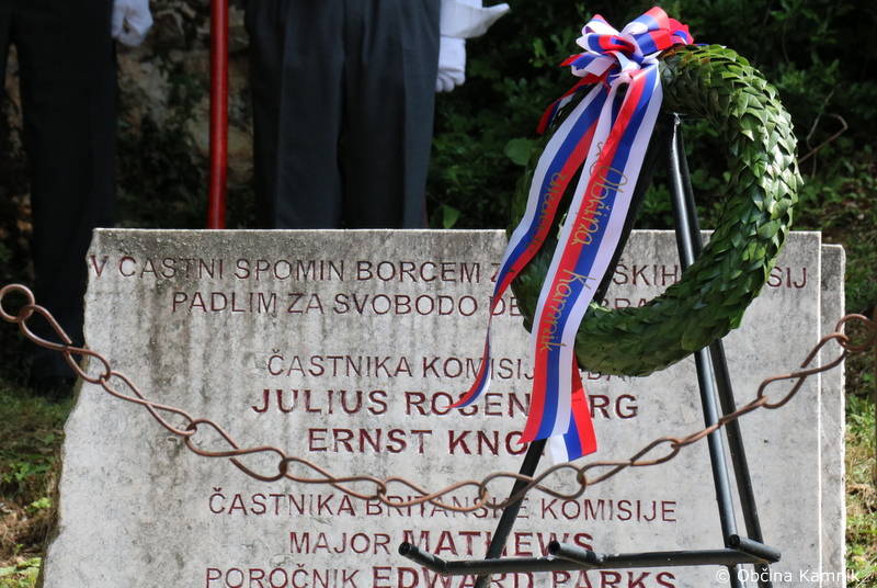 Na mestu spomina in opomina se je delegacija s položitvijo venca ob prisotnostizastavonoš poklonila dr. Petru Držaju, vodji ameriške vojne misije, kapetanu Charlesu Fisherju, dvema ameriškima oficirjema Juliusu Rosenbergu in Ernstu Knothu, ter dvema britanskima oficirjema, majorju Mathewsu in poročniku Edwardu Parksu, ki so v letih 1944 in 1945 padli za svobodo v teh krajih. Slovesnost je pripravilo Združenje borcev za vrednote NOB Kamnik in Združenje borcev Tuhinj.