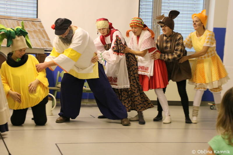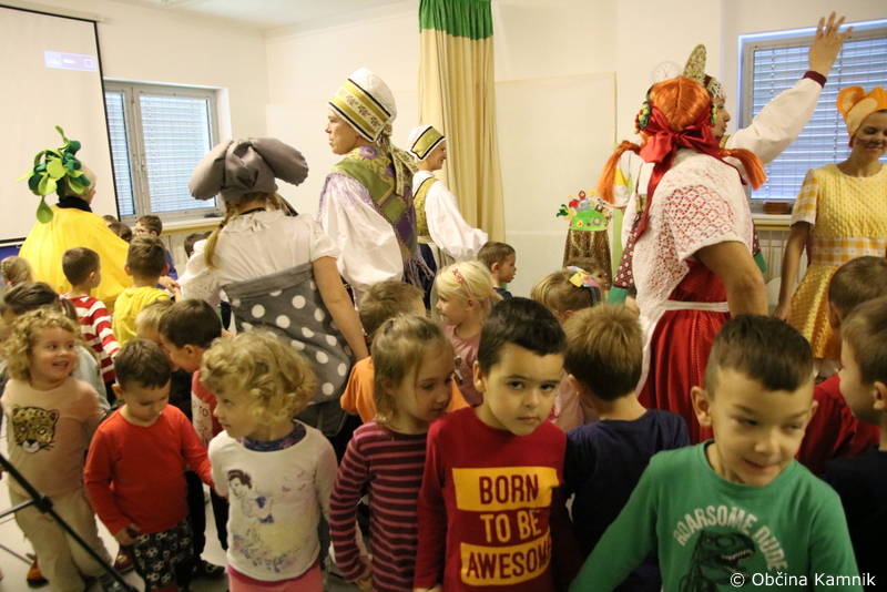 Smeh in glasba se je nato razlegala po enoti Sneguljčica Vrtca Antona Medveda Kamnik. Gledališka skupina vrtca, pod skrbnim vodstvom ravnateljice mag. Liane Cerar, nam je pripovedovala zgodbo o repi v ruskem in slovenskem jeziku, predstavili so nam slovensko in rusko narodno nošo in tako pripravili izjemno igrano predstavo. Pokazali pa so nam tudi to, da se njihovi malčki vsakodnevno izobražujejo o pridelovanju hrane in samooskrbi. Župan Matej Slapar se je ob tej priložnosti iskreno zahvalil celotnemu strokovnemu osebju, ki skrbi za to, da so otroci ozaveščeni o pomembnosti lokalne smooskrbe.