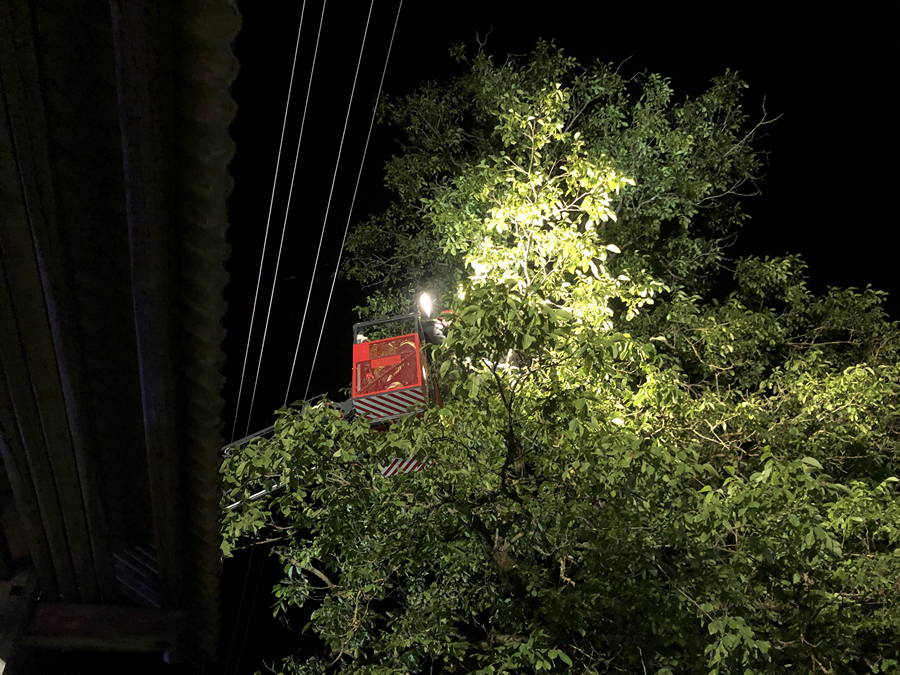 Ob pomoči policistov, ki so v času intervencije zaprli cesto, ter dežurnega delavca Elektro Ljubljana, ki je začasno odklopil elektriko, so gasilci PGD Kamnik problematične veje drevesa odstranili.