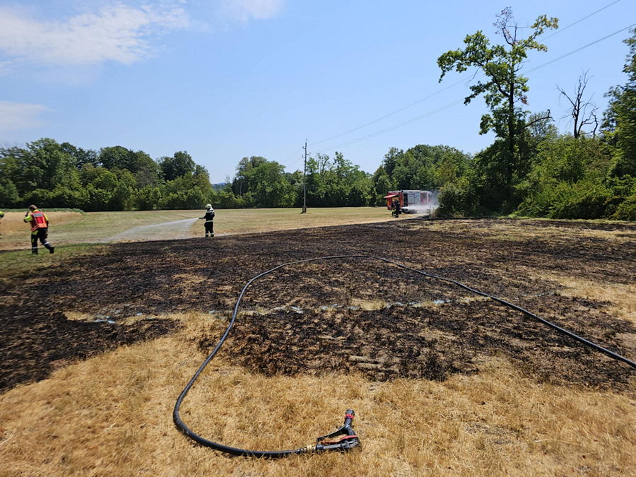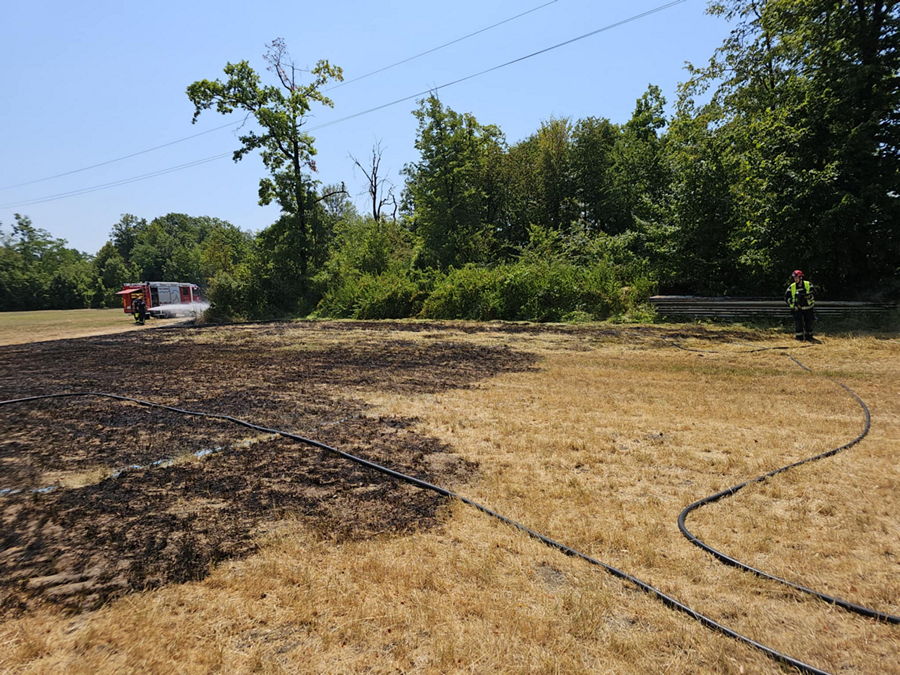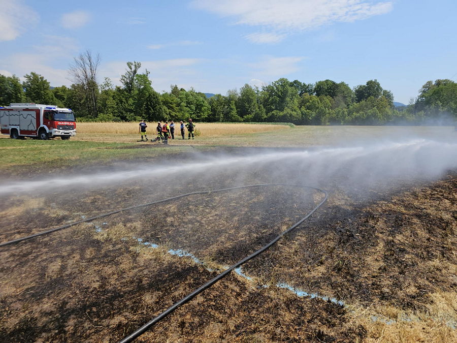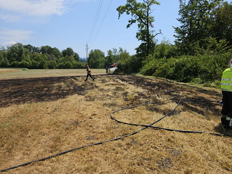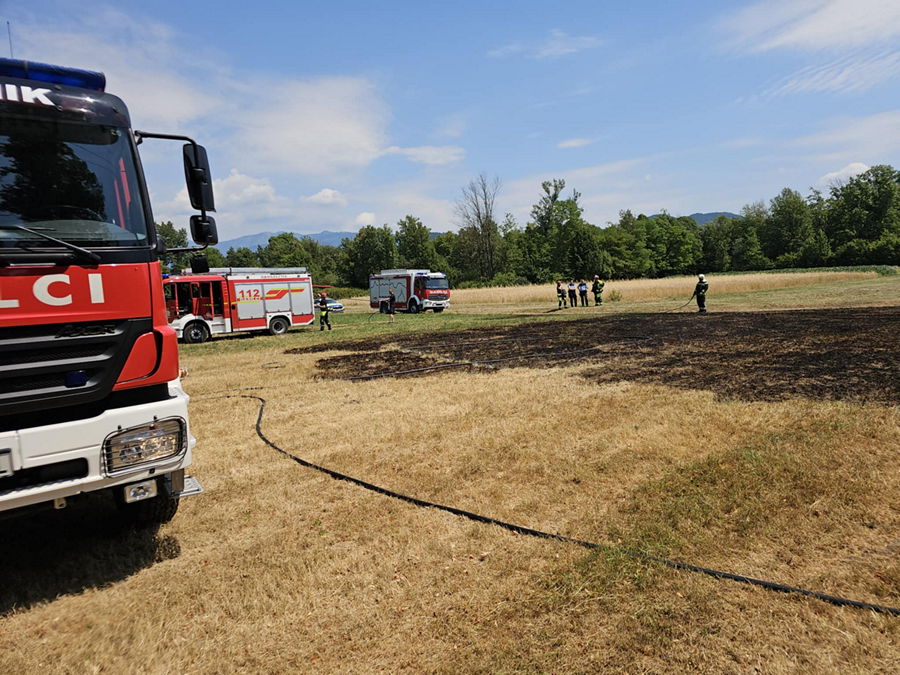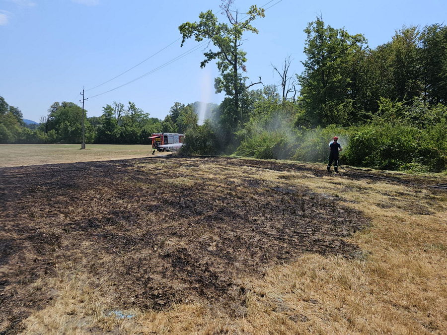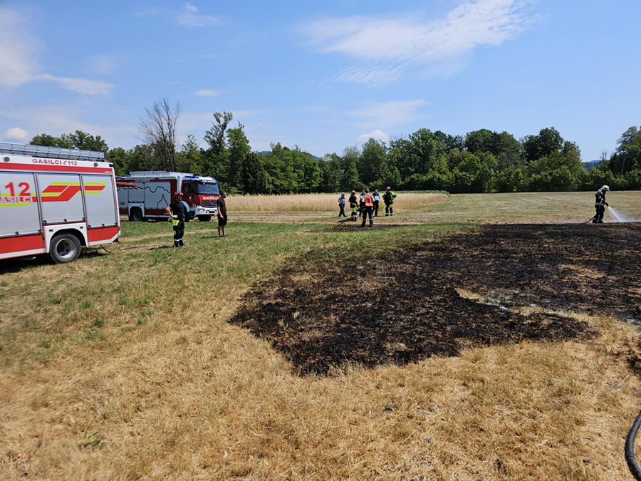 Ogenj je zajel dobrih 200 kvadratnih metrov presušene travnate površine, vzroke požara pa bodo poskušali razvozljati policisti, ki so bili prav tako na kraju.