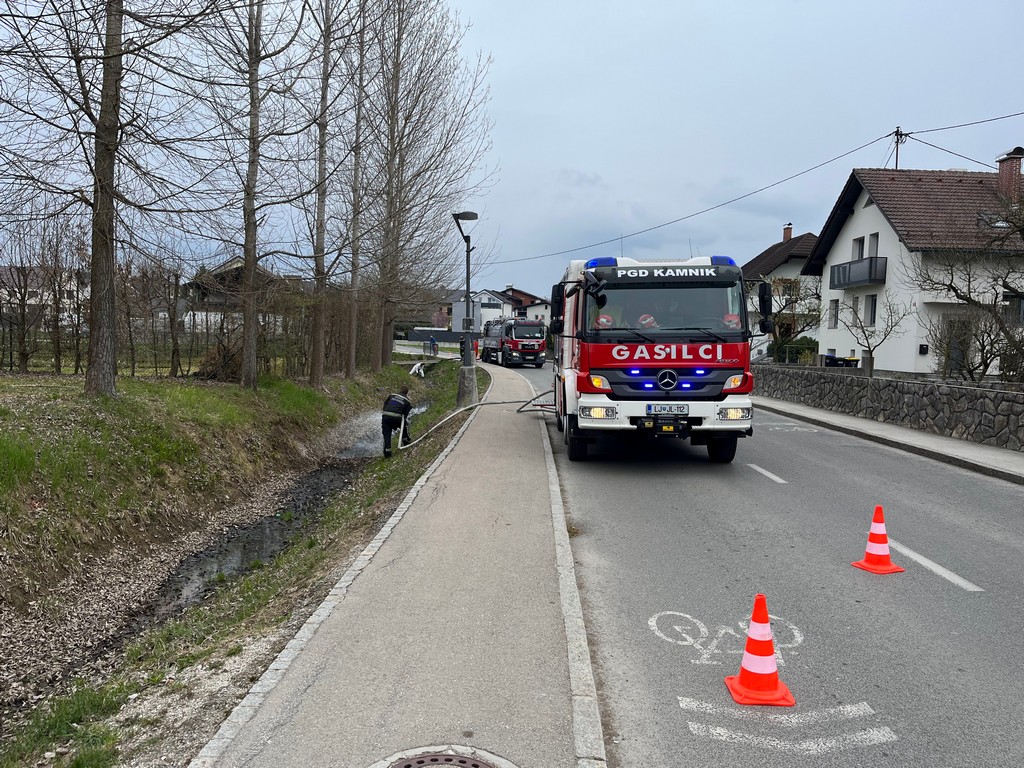 Onesnaženje so opazili občani, na kraju pa so posredovali gasilci PGD Kamnik, ki so z analizo vode ugotovili, da se v manjšem vodotoku nahaja hidravlično olje.
