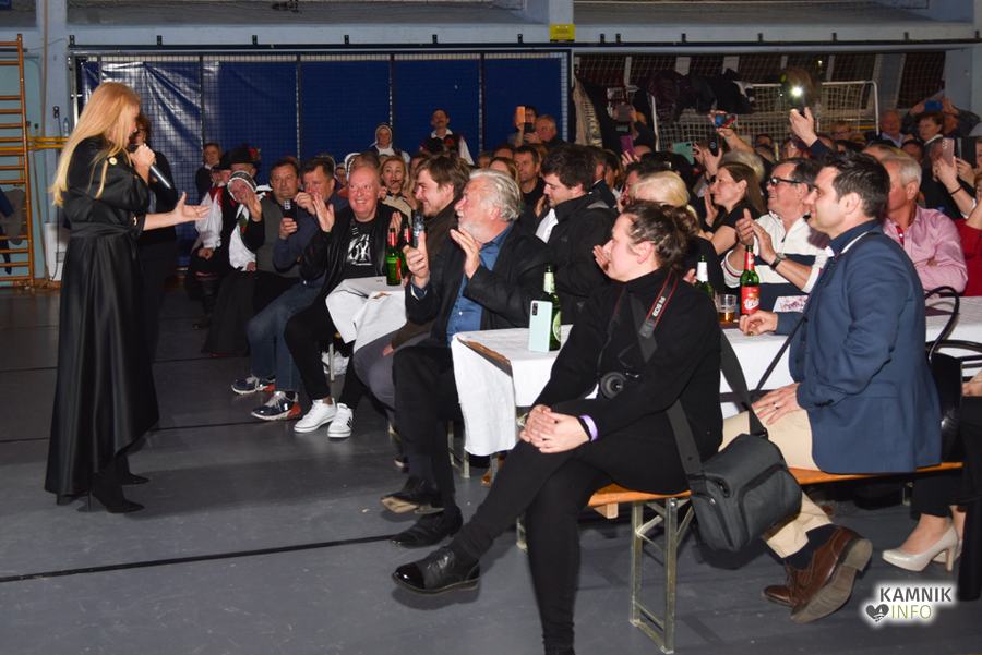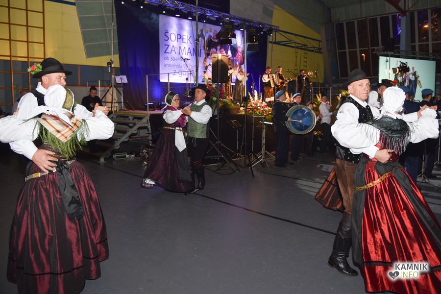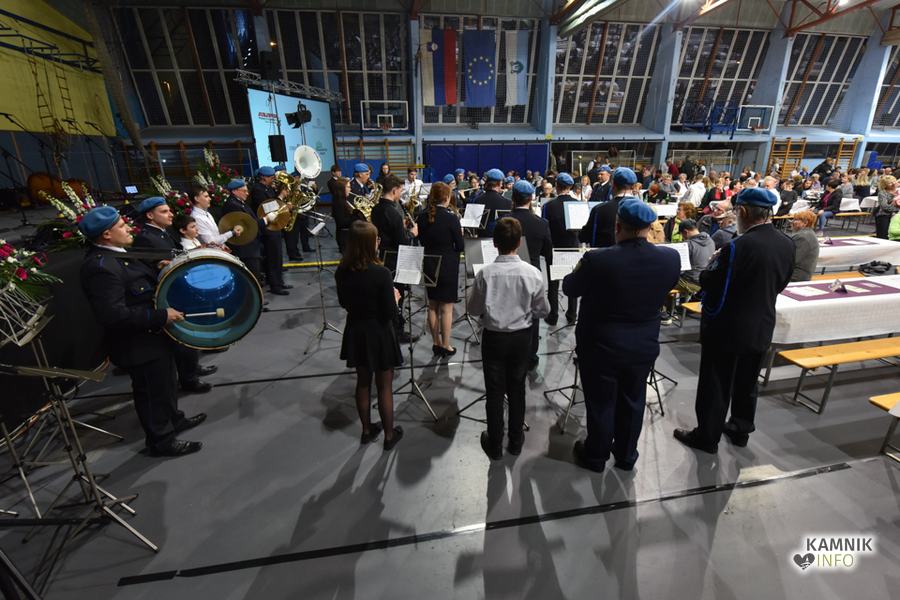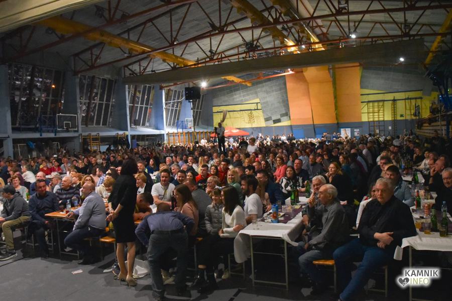 Že zdavnaj ponarodela skladba Poljanškov, neuradna kamniška himna Veselo v Kamnik, pri kateri se je na odru glasbenikom pridružil tudi čestitno noseč in v narodno nošo odet vodja lokalnega, bržkone bolj nerodnega, kot zabavnega ansambla Občinski zapravljički, pa je predstavljala vrhunec glasbeno-zabavnega večera, saj se je v prepevanju zbranim v plesu pridružila domala cela kamniška športna dvorana, ki je po koncu uradnega dela nekaj ur trajajoče prireditve, ob veselih vižah rajala do jutranjih ur.