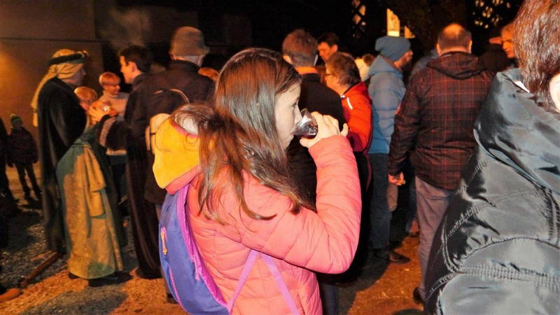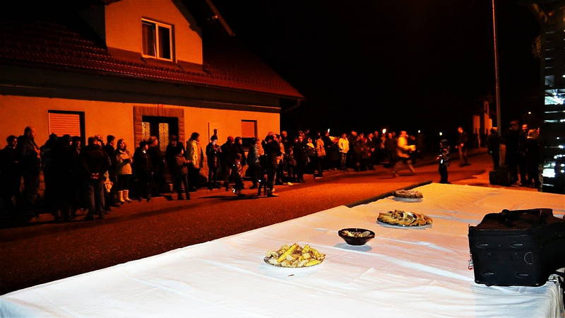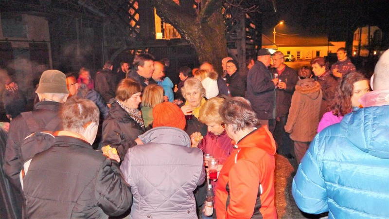 Po trikraljevski kolednici, blagoslovu in godbenem božičnem darilu je več kot sto obiskovalcev, od katerih so mnogi prijezdili iz Ljubljane, Lukovice in drugih čezmorskih krajev, pristopilo najprej h kraljevski skrinjici za misijonske darove, nato pa k bogato obloženemu vozu in si privoščilo prigrizek: kapljo piva, soka ali čaja, kupico druženja. Tudi košček kruha in kolešček vroče klobase ni bil preveč, ob marmorirani lepoti potratne potice ter drugih sladkih dobrotah izpod rok perovskih gospodinj so bile besede čisto odveč. Vreme sploh ni bilo več tako »čudno«, vsi so se naenkrat poznali, objemi, stiski rok in srečne želje so napolnile jaslični del Kovinarske ceste, da je bil za jeklene konjičke neprevozen. Množica se je počasi razkadila skupaj z dimom kadila treh kraljev, najbolj vztrajni pa so se čez kako uro zatekli v gostoljubno Grošanovo garažo in tam pametovali skoraj do jutranjih ur …