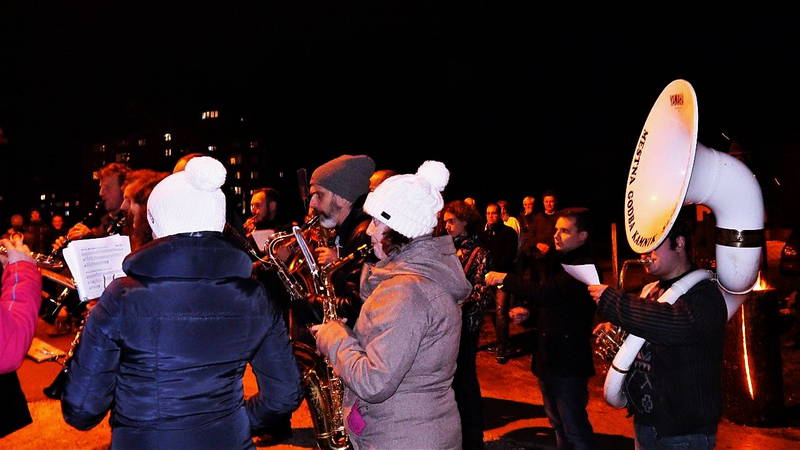 Zamisel, da poleg kolednikov-kraljev na Perovo povabijo Mestno godbo Kamnik, se je izkazala za briljantno. Pričakovali so peščico godbenikov, pa se nam jih je pridružilo več kot dvajset. Godba in jaslice, je to sploh združljivo??? Tri skladbe, Sveta noč, Hitite, kristjani in Glej, zvezdice božje so, predvsem zaradi nežnosti, izvabljene iz instrumentov, stereotipno razglašenih za glasno grobe in grobo glasne, zvabile marsikatero solzo v oči.