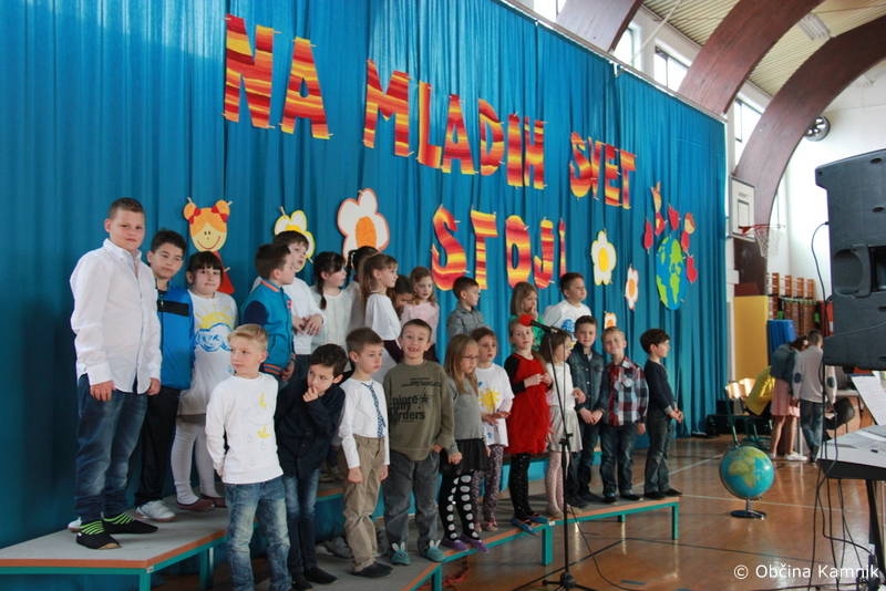 Podžupan Matej Slapar pa je v imenu Občine Kamnik dejal: »Hvala, da ste pripravili ta dogodek, s katerim bomo vstopili v pomlad. V tem letnem času se vse prebuja in vse začenja cveteti. Tudi vi mladi se prebujate. Današnjo prireditev ste poimenovali Na mladih svet stoji. Da bo temu tako, ste odgovorni vi mladi. Človek, oborožen z znanjem je nepremagljiv. Zato otroci, učite se in veselo pomlad vam želim. Ob prihajajočem materinskem dnevu pa vsem materam iskrene čestitke.«
