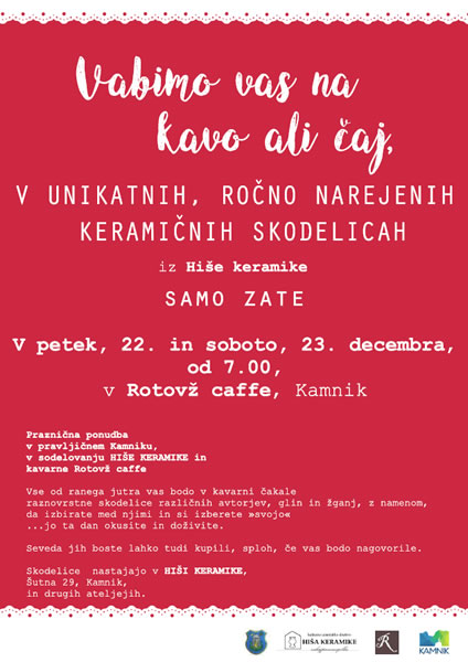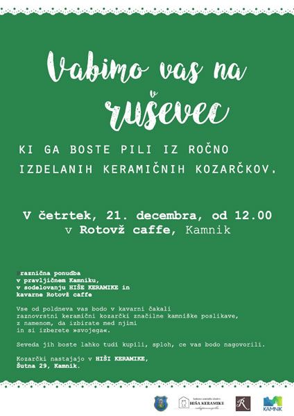V četrtek bo v kavarni Rotovž Caffe tako denimo možno naročiti ruševec, ki ga boste pili iz ročno izdelanih kozarčkov, ki so jih ustvarili člani KUD Hiša keramike. V petek, soboto in nedeljo, pa boste lahko čaj ali kavo popili iz raznovrstnih skodelic različnih avtorjev in različnih glin, da si med njimi izberete “svojo”.