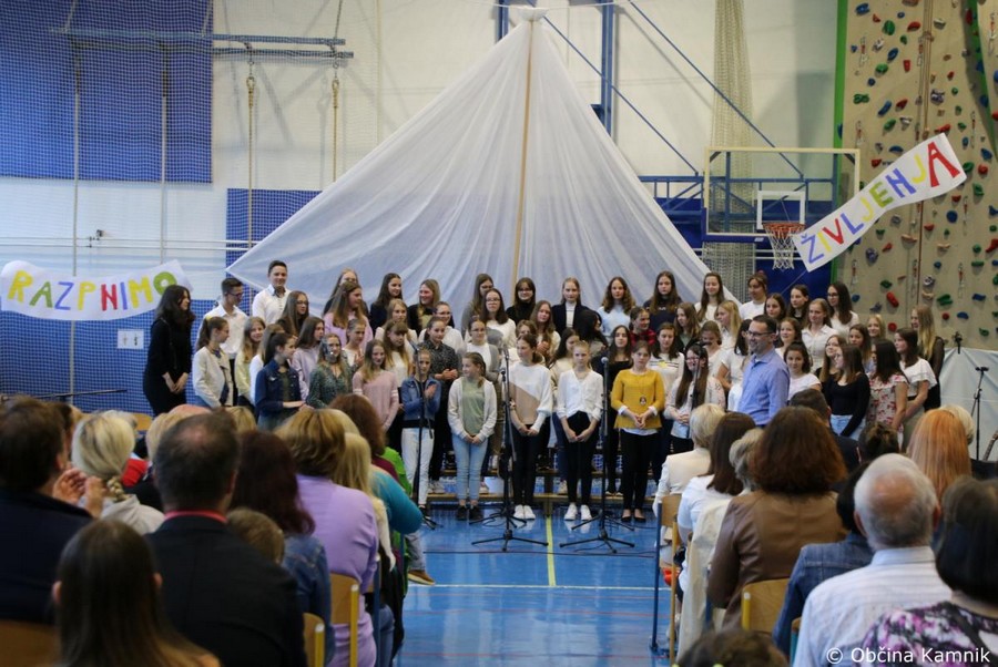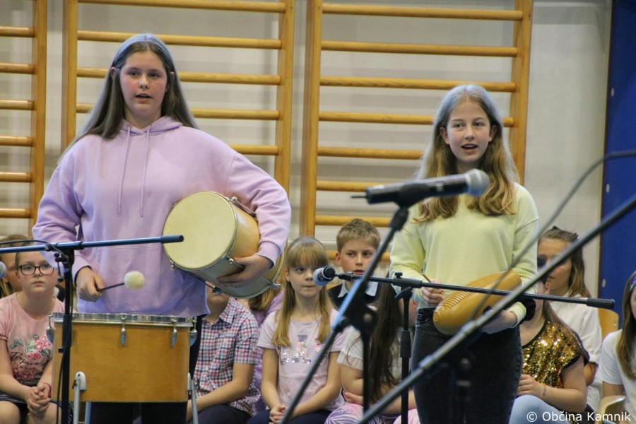 Župan Matej Slapar pa je obiskovalcem prireditve in otrokom med drugim dejal: »Pozdravljeni v imenu Občine Kamnik, prav lepo vas je videti v tako velikem številu. Lepo je, da lahko prisluhnemo, kaj so se naši mladi naučili v tem času, ko se nismo mogli srečevati v tako velikem številu. Želim vam lep večer, učenkam in učencem pa ob skorajšnjem zaključku leta želim, da se še potrudite, da boste imeli lepe poletne počitnice. Srečno.«