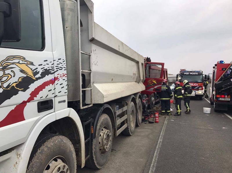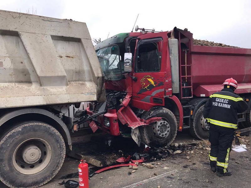 Nekaj po deseti uri dopoldan je v Mostah pri Komendi prišlo do trčenja dveh tovornjakov, pri čemer je voznik enega izmed kamionov ostal ukleščen v vozilu.