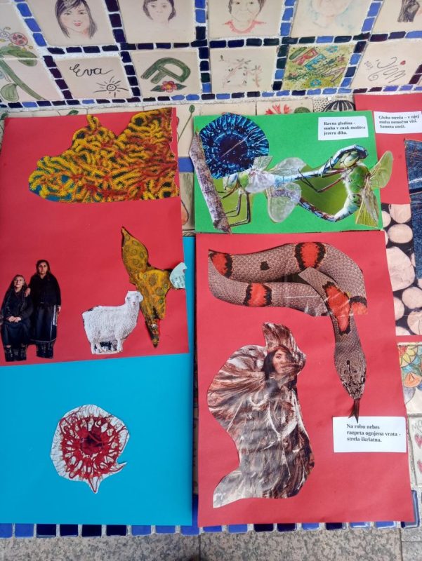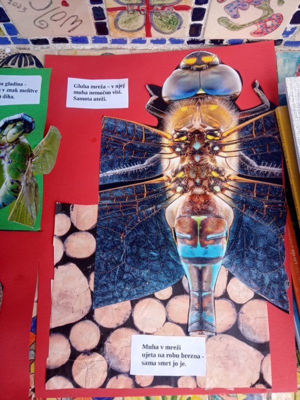 Številni haikuji, ki so avtorsko delo Miše Gams, so tako pristali na barvnih kolažih, na katerih so se nahajali različni motivi, med katerimi naj omenimo povečane fotografije žuželk, starodavnih arheoloških iznajdb in najrazličnejših prizorov iz narave in vesolja. Čeprav so bili do svojevrstne igre izbranih podob in “izžrebanih” pesmi mimoidoči Kamničani na to ležerno sobotno dopoldne po precej nevihtni noči morda malce zadržani, so se tu in tam radovedno ustavljali in preučevali nevsakdanje delo.