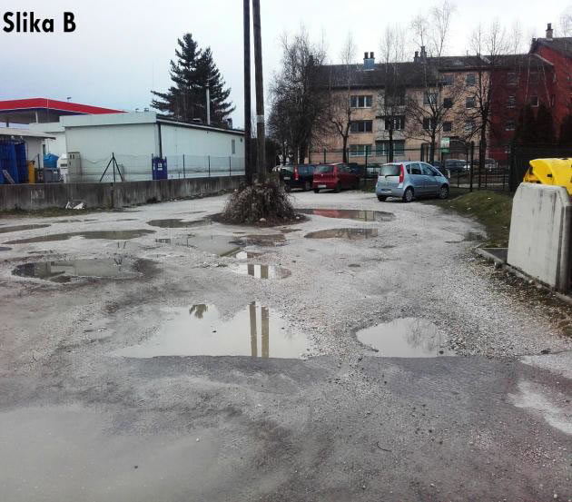 V svoji pobudi je zapisal: »Na tem mestu je že dolgo časa neurejeno in zelo neugledno parkirišče, ki nima urejenega odvodnjavanja s parkirnih površin, kar ogroža kakovost podtalnice; neutrjena površina je polna udarnih jam in velikih luž, vse skupaj pa daje zelo neugleden vtis (gl. Sliko A in Sliko B).