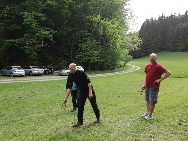 Ob okusnem golažu in obilici peciva, ki so ga napekle pridne gospodinje so naša telesa postajala vedno bolj lena. Zato je bila Sandijeva ideja, da popoldan popestrimo s ”turnirjem” v metanju podkev, popolnoma na mestu. Stari in mladi, začetniki in nekoliko bolj izkušeni smo dokazali, da šport resnično povezuje ljudi. V olimpijskem duhu in z medgeneracijskim sodelovanjem smo bili na koncu vsi zmagovalci.