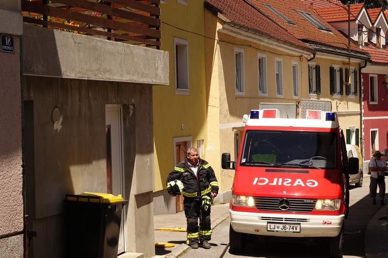 Prijeten sobotni dan v Kamniku so nekaj pred poldnevom vznemirile sirene gasilskih vozil, ki so v center mesta prihitela gasit požar na Samostanski ulici.