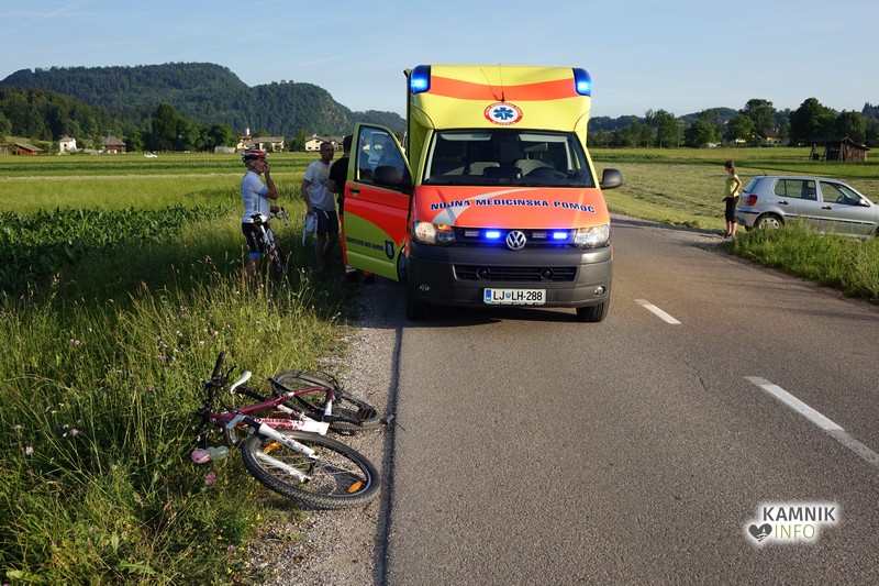 Na cesti med Mekinjami in Godičem, malo naprej od odcepa za Podjelše, je proti večeru prišlo do prometne nesreče, v kateri je bila poškodovana mlajša kolesarka.