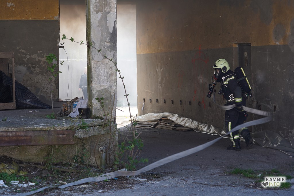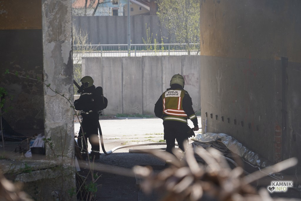 Še preden so gasilci lahko goreč objekt, ki je v lasti Občine Kamnik, lahko začeli gasiti, so morali skupaj s policisti preveriti, če se morda v objektu še kdo nahaja. Večina oseb, ki razpadajoč objekt uporablja kot pribežališče oz. zavetišče, je prostore ob požaru sicer že zapustila, eni osebi pa je bilo potrebno, spričo njenega nezanesljivega stanja, pomagati na plano.