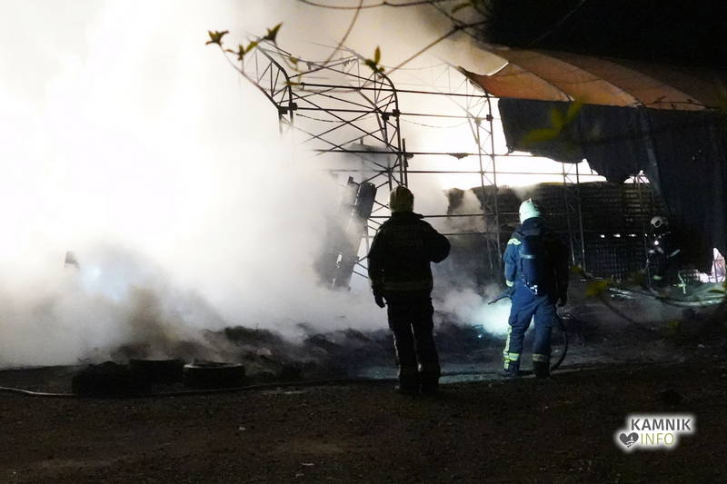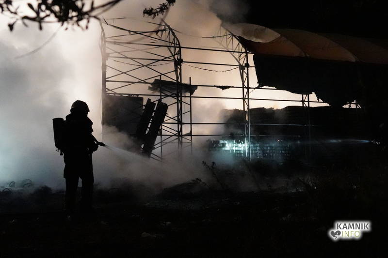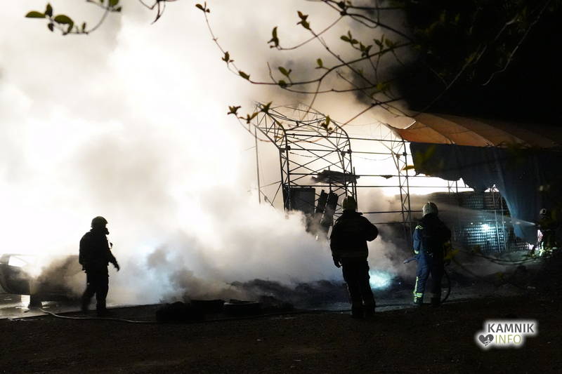 Nočni požar večjega skladiščnega šotora, ki so ga gasili gasilci petih prostovoljnih gasilskih društev, je povzročil kar nekaj škode.