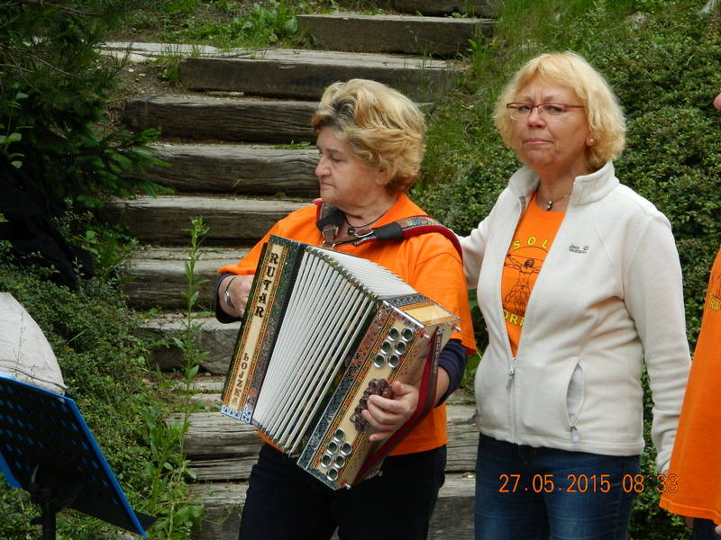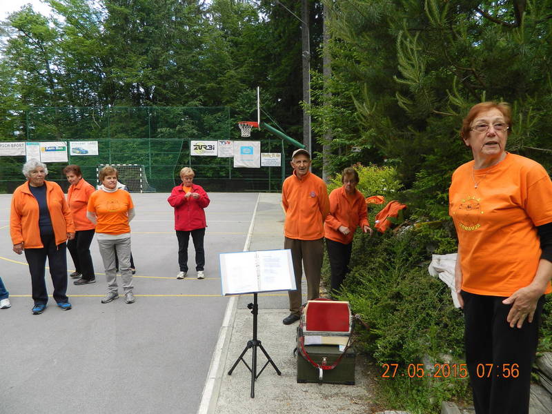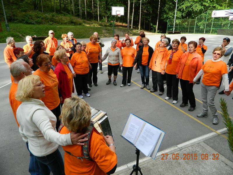 Podgorci pa so ob zvokih harmonike Lojzke Ocvirk na melodijo Regiment po cesti gre… dodali še: “Vsako jutro mi hitimo, da v Podgorju se dobimo, v športnem parku sred gozda se zberemo in si dobro jutro voščimo…”