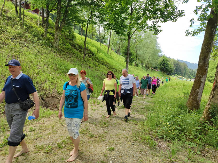 Ker je bilo vroče in sončno vreme, res ni bilo težko sezuti čevlje in se spoznati bolje z učinki bosonoge hoje skozi prijetno zeleno naravo. Po poti je udeležence vodila Katarina Ilić, vodnica po nagrajeni NAJ tematski bosonogi poti, po kateri so se bosi sprehodili in izvedli še Kneippov kolenski obliv.
