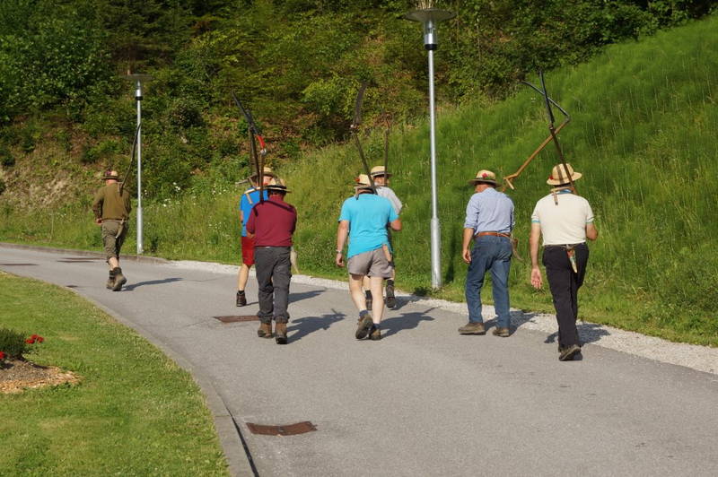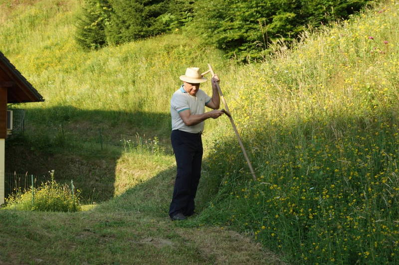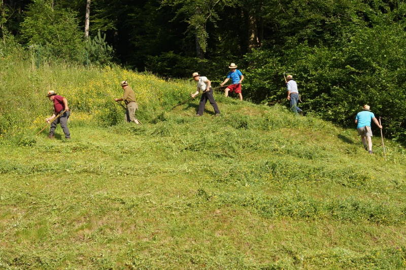 V Termah Snovik so člani Turističnega društva Tuhinjska dolina tudi letos pripravili prikaz košnje in spravila sena po starem.