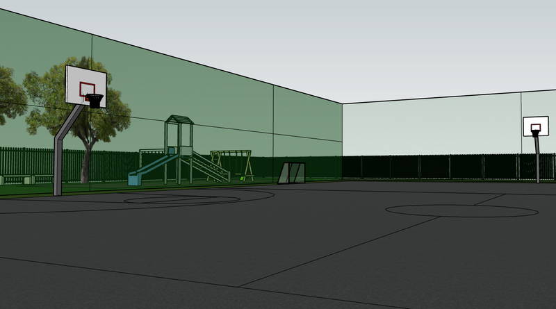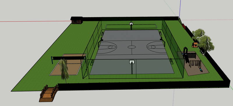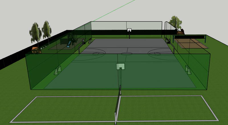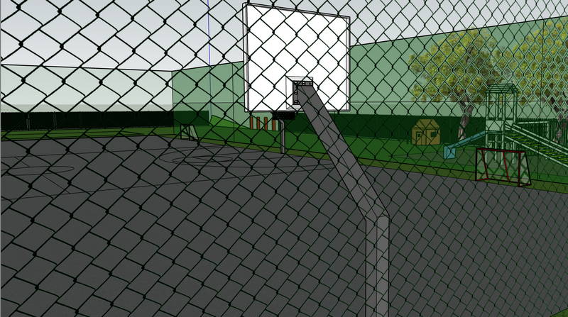 - Prvotni koši za košarko ostanejo, dodajo se dva koša tam kjer so bili obstoječi veliki goli, ki se odstranijo