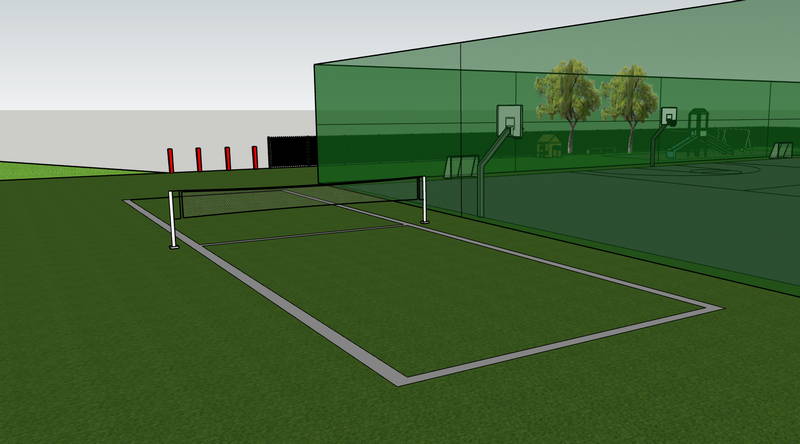 - Severno, kjer je že sedaj igrišče za odbojko na travi se uredi igralna površina z mivko