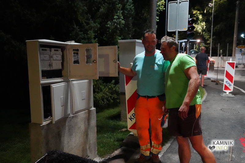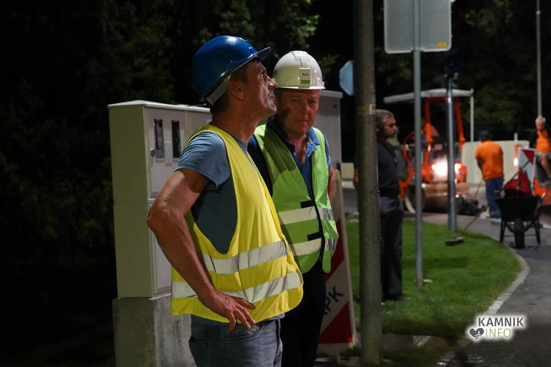 Na nočnem cestnem gradbišču je delovni utrip podoben pravemu mravljišču, dela pa, vsaj za enkrat, potekajo tekoče in skladno s predvidenim načrtom, tako da bo križišče, če ne bo prišlo do kakih nepredvidenih zapletov, predvidoma asfaltirano že okoli polnoči, samo križišče pa bo, zaenkrat zgolj za osebna vozila, znova odprto in prevozno že v zgodnjih jutranjih urah oz. okoli pete ure, medtem ko bo za tovorni in avtobusni promet, v izogib poškodbam oz. želji, da se asfalt dodobra utrdi in ohladi, jutri še ostalo zaprto.