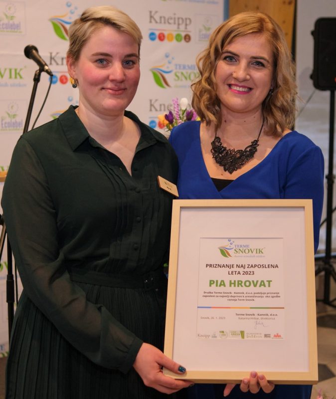 Tako Hribarjeva kot prokurist sta posebno zahvalo na praznovanju izrekla vsem zaposlenim, saj ljudje ustvarjajo turizem. V termah se vzpostavlja kompetentna ekipa sodelavcev, ki zavzeto uresničuje vizijo in poslanstvo družbe, zato jim gre posebna zahvala. Vodstvo družbe ob tej priložnosti in praznovanju obletnice izpostavi najbolj zaslužne delavce po posameznih oddelkih: Blažka Vončina iz oddelka animacija, Radmila Milošević iz oddelka gospodinjstvo, Advija Halilović iz oddelka kuhinja, Mojca Stele iz oddelka strežba, Marija Komatar iz oddelka prodaja in marketing, Pia Hrovat iz oddelka recepcija, Klavdija Hribar iz oddelka bazen, Saša Klar iz oddelka wellness in Marta Drolc iz oddelka pomožne službe. Najvišje priznanje za NAJ zaposleno leta je prejela Pia Hrovat. Ob predaji priznanja je Hribarjeva obrazložila: »Pia je oseba, ki svoje delo odlično opravlja, je zavzeta, pozitivna, dobrovoljna in vedno priskoči na pomoč. Pri svojem delu je odgovorna, trajnostno naravnana, ima zaupanja vredne odnose s sodelavci in z veseljem deli svoje znanje med njih. Sledi zastavljeni viziji, zato se ji želi družba še posebej zahvaliti za predanost in zaupanje.« Cvet deklet je skupaj z direktorico tudi zarezal v rojstnodnevno torto iz kuhinje restavracije Potočka, ki je prav tako pripravila celotno pogostitev za goste obletnice.