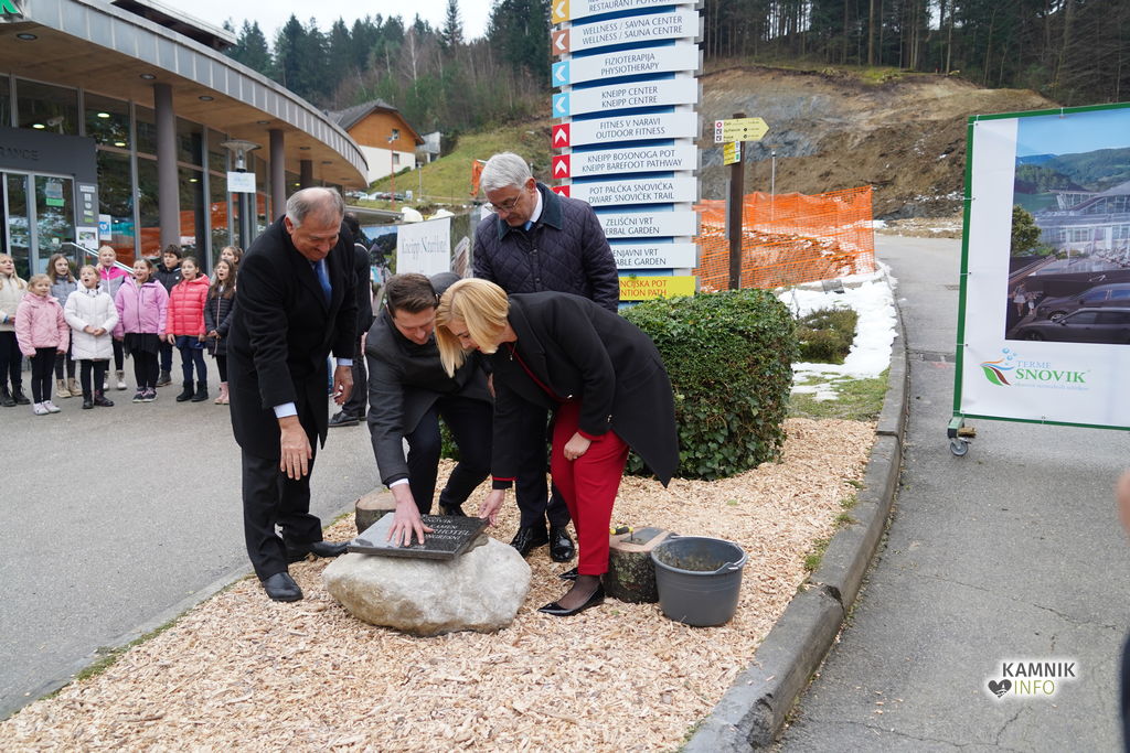 Temeljni kamen ob začetku gradnje hotela , ki je tudi največja dosedanja investicija Term Snovik, so slovesno položili Ivan Hribar, idejni oče in prokurist Term Snovik, minister za gospodarstvo, turizem in šport Matjaž Han, kamniški župan Matej Slapar in Katarina Adam, direktorica Term Snovik.