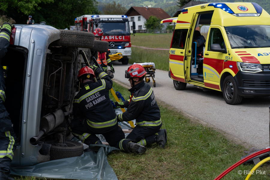 Sestavni del srečanja je bila tudi prikazna vaja, ki so jo izvedli člani PGD Kamnik in NMP Kamnik. Odvila se je vaja reševanja ponesrečenca iz avtomobila; scenarij je predvidel prometno nesrečo, pri čemer je avto prevrnilo na bok, v vozilu pa je ostal slabo odziven moški. Gasilci ter reševalci so na lokacijo prispeli z reševalnimi vozili – prvi so vozilo stabilizirali, odklopili akumulator, odstranili streho, reševalci pa so se medtem skozi prtljažnik prebili do ponesrečenca in mu že v notranjosti avtomobila nudili pomoč. Po odstranitvi strehe so ga ob pomoči PGD Kamnik iznesli ter mu nudili nadaljnjo oskrbo.