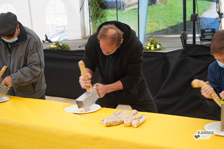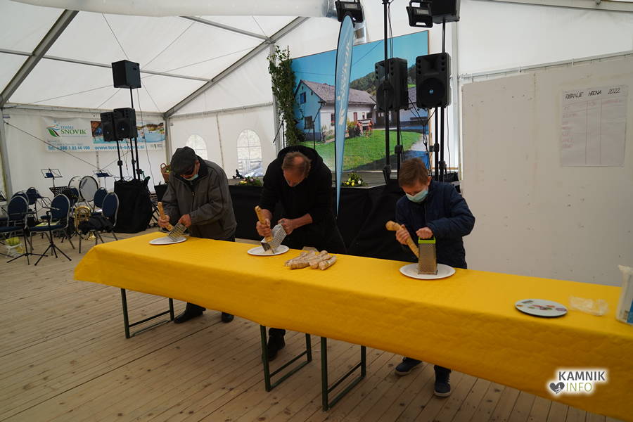 Velikonočni sejem v Snoviku je bil znova živahen in dobro obiskan, hren pa je najbolj spretno ribal Franci Kržišnik iz Polhovega Gradca.