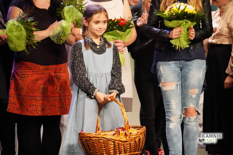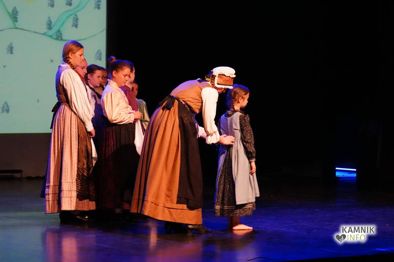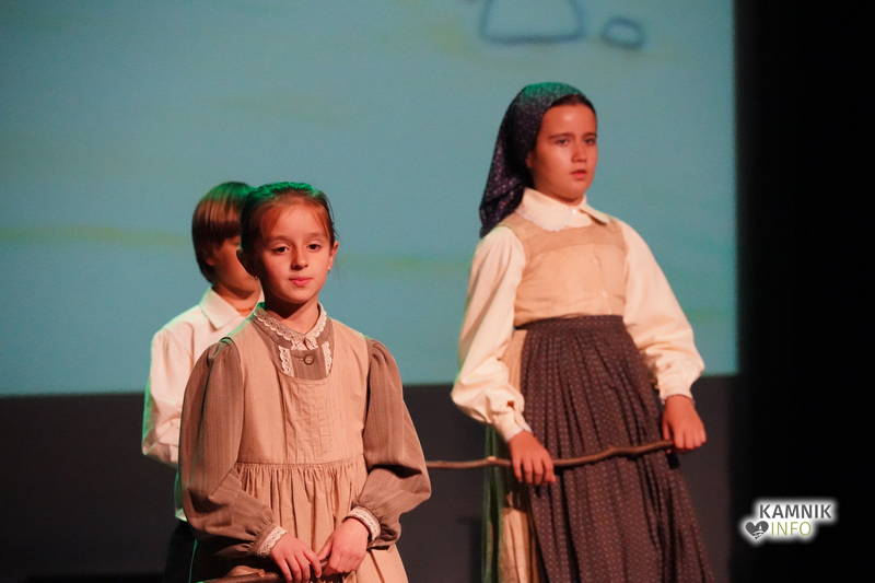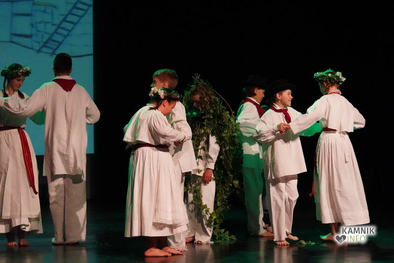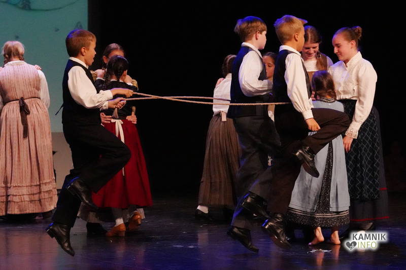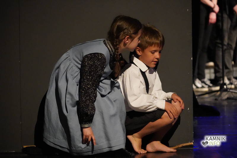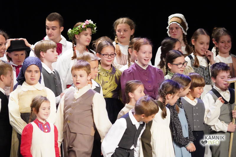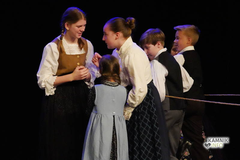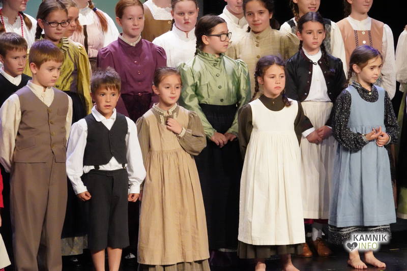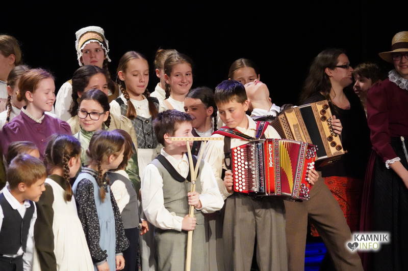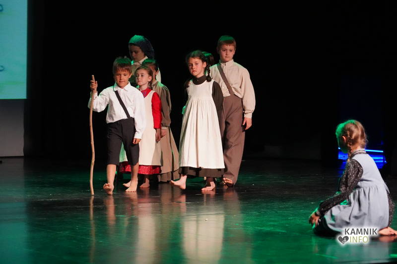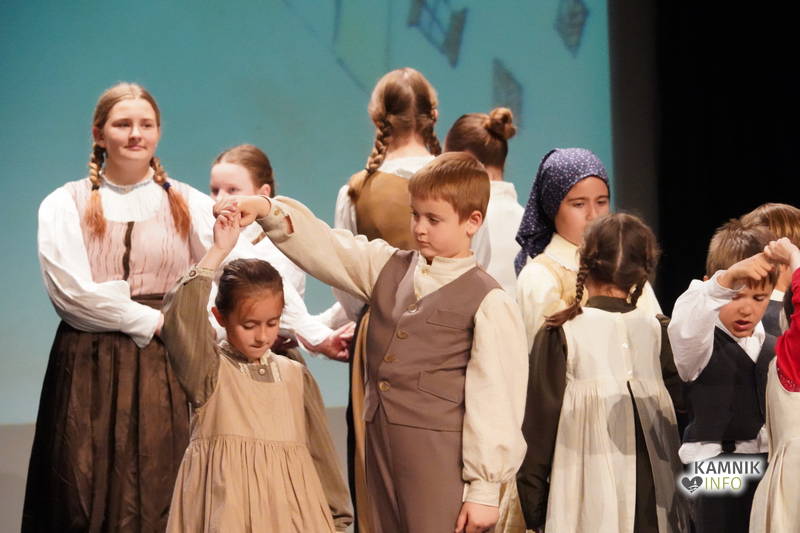 Na odru je nastopilo kar 55 otrok; 21 plesalcev, 9 ljudskih godcev in 25 pevcev. Nekaj članov pevskega zbora in gledališkega kluba je tudi zaplesalo. Vsi so se odlično odrezali, v glavni vlogi pa nas je navdušila drugošolka Manuela Mišković, ki je bila ves čas na odru in plesala skoraj v vseh plesnih postavitvah.
