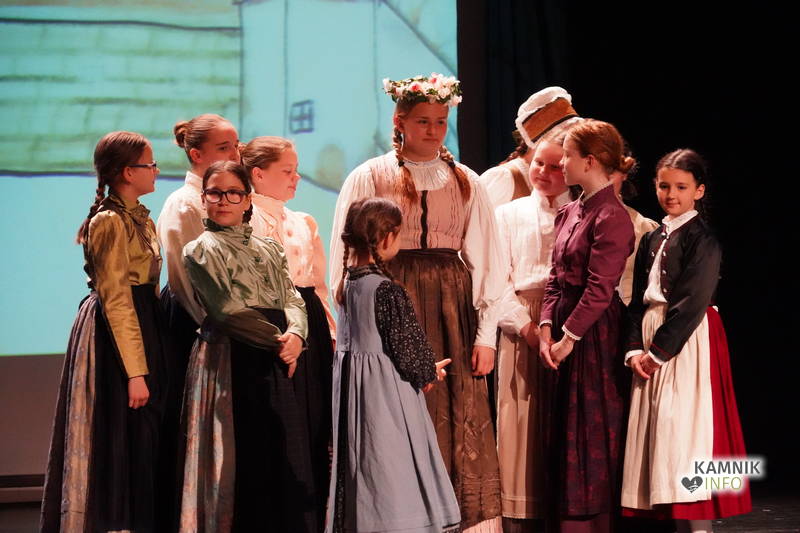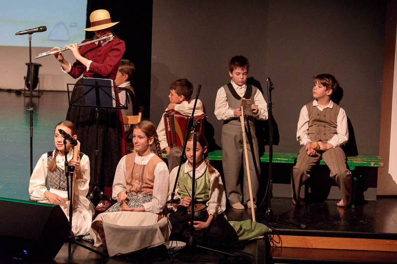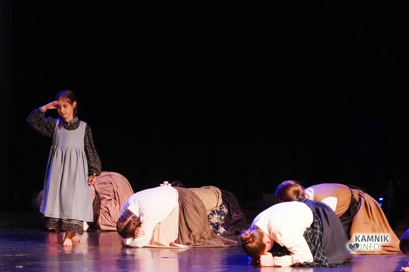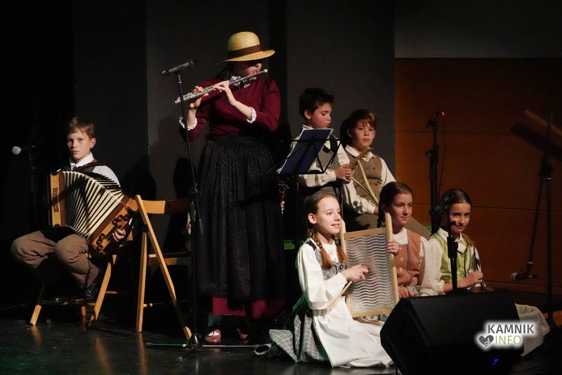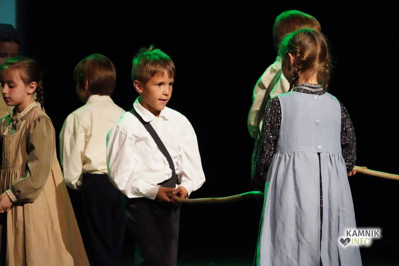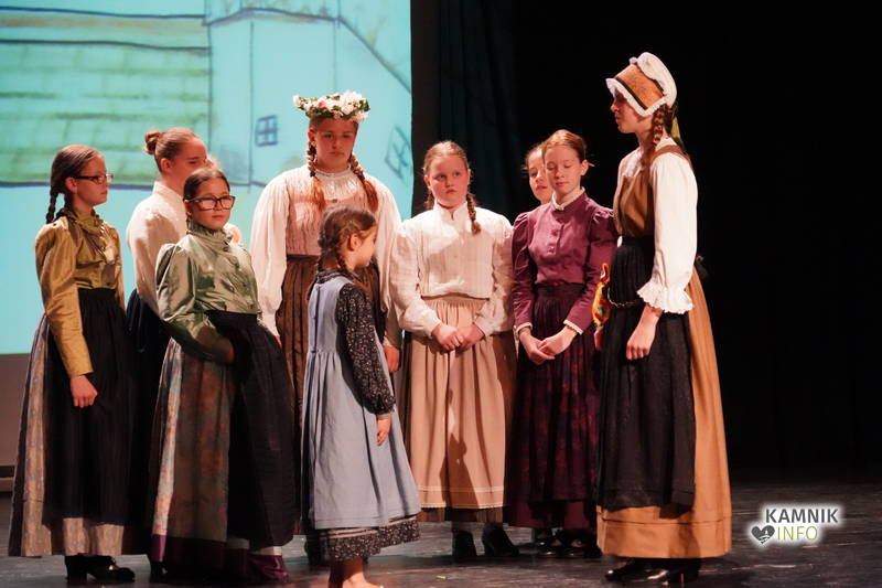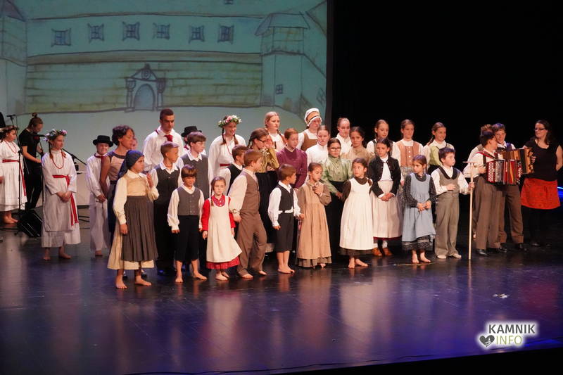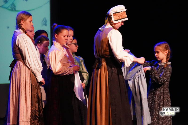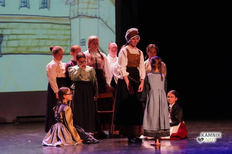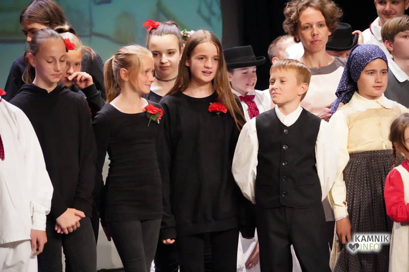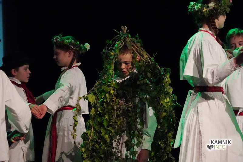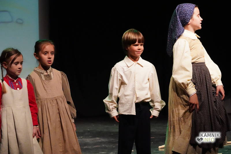 Na odru je nastopilo kar 55 otrok; 21 plesalcev, 9 ljudskih godcev in 25 pevcev. Nekaj članov pevskega zbora in gledališkega kluba je tudi zaplesalo. Vsi so se odlično odrezali, v glavni vlogi pa nas je navdušila drugošolka Manuela Mišković, ki je bila ves čas na odru in plesala skoraj v vseh plesnih postavitvah.