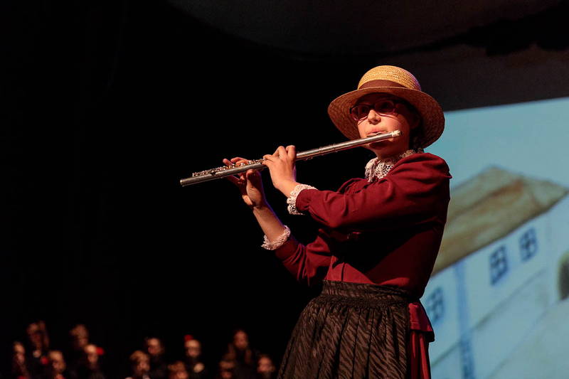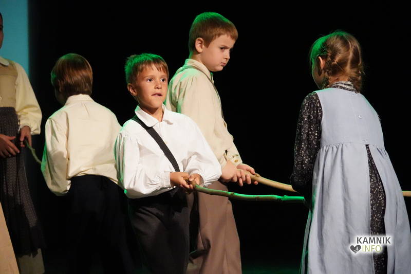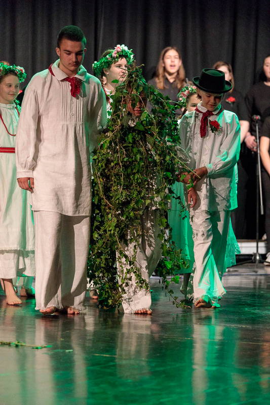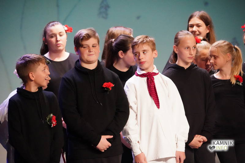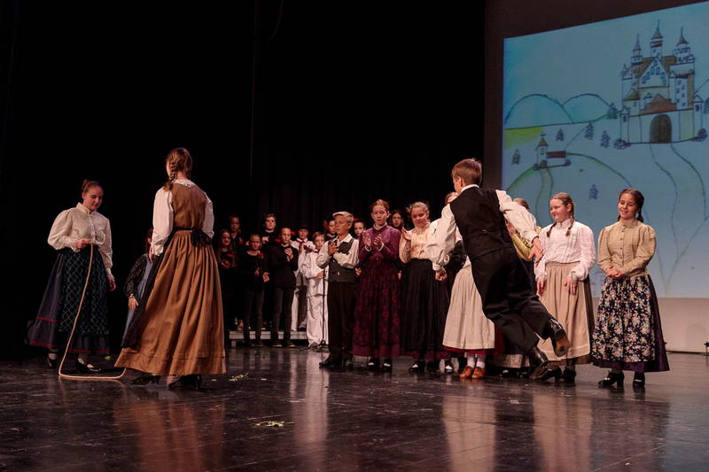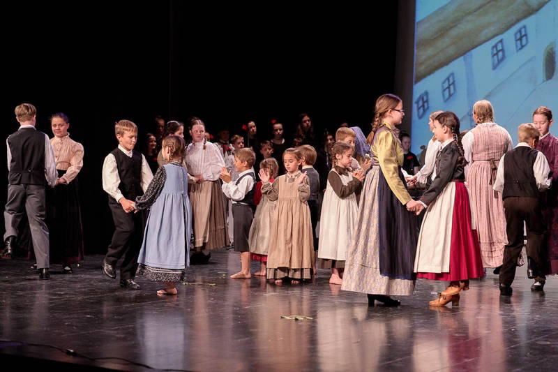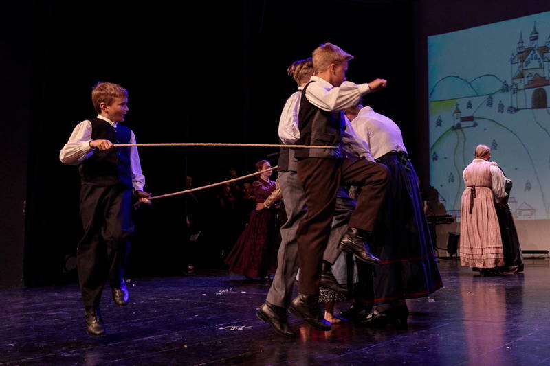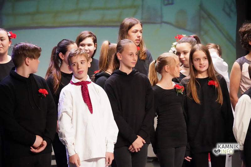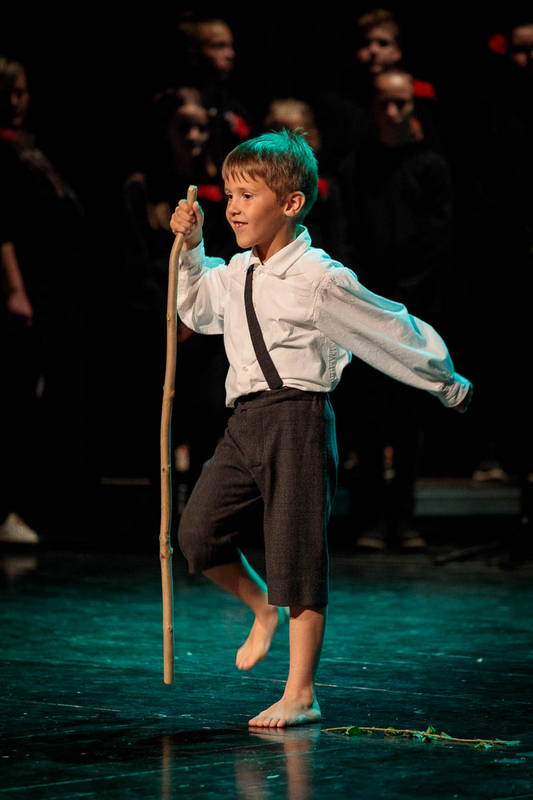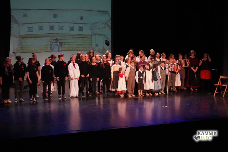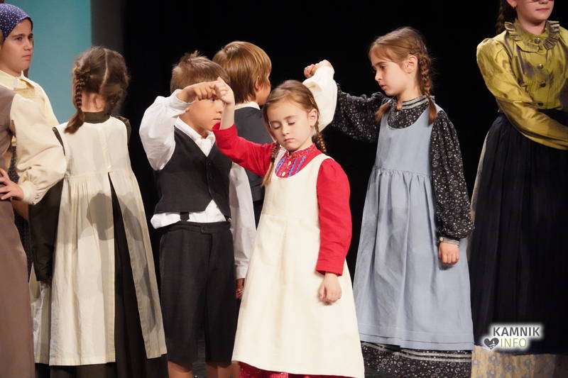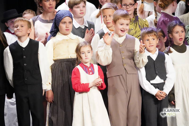Na odru je nastopilo kar 55 otrok; 21 plesalcev, 9 ljudskih godcev in 25 pevcev. Nekaj članov pevskega zbora in gledališkega kluba je tudi zaplesalo. Vsi so se odlično odrezali, v glavni vlogi pa nas je navdušila drugošolka Manuela Mišković, ki je bila ves čas na odru in plesala skoraj v vseh plesnih postavitvah.