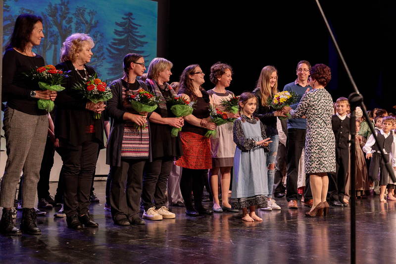 Po končani predstavi je na oder stopila tudi ravnateljica, ki se je zahvalila obema mentoricama OFS Verine zvezdice Marjetki Usar in Vanji Hočevar, mentorici pevskega zbora in ljudskih godcev Alenki Markus, zunanji mentorici Anji Završnik, Goranu Završniku in MC Kotlovnica za tehnično podporo, Heleni Trobentar za kostumsko podobo, Toniju Hočevarju za večkratno pomoč pri skupini, učenki sedmega razreda Larisi Vrečar, ki je ilustrirala vse slike in animacije, ki so se med predstavo prikazale na platnu, ter njeni mentorici Ireni Zagožen.