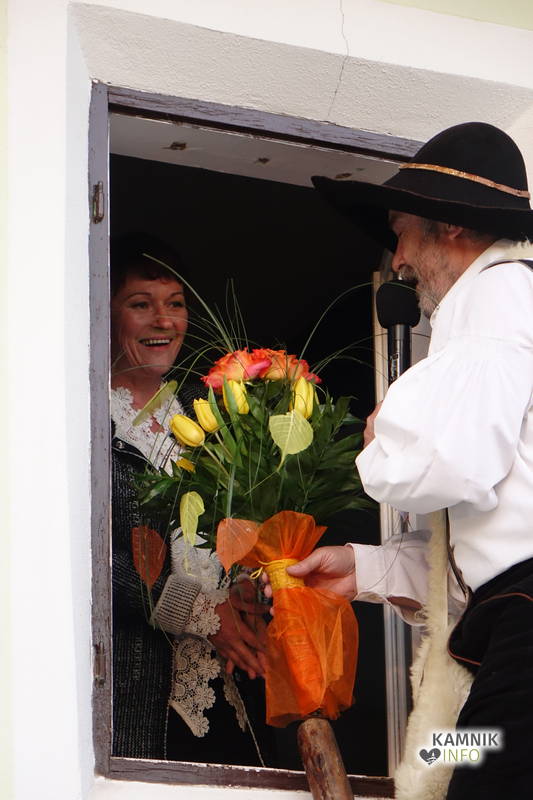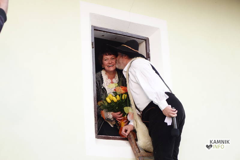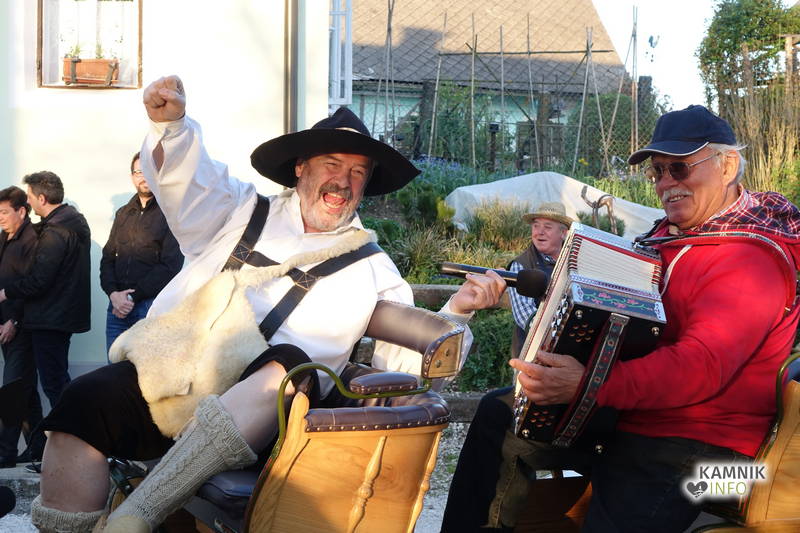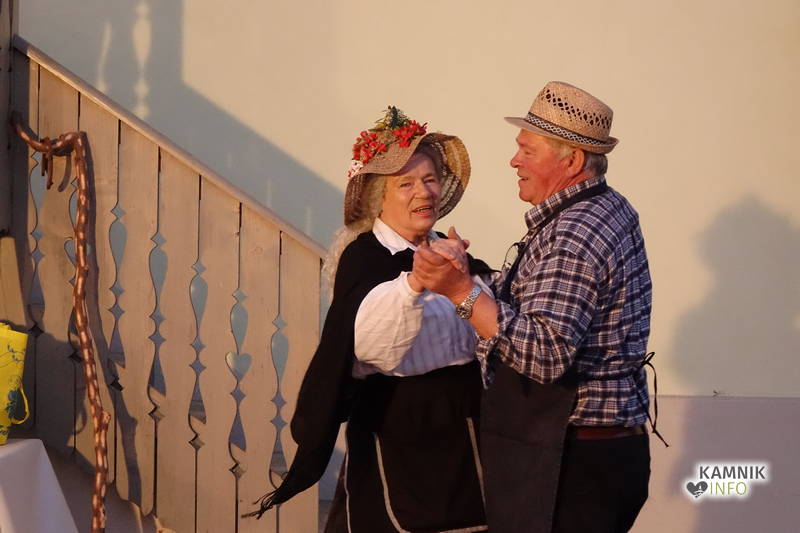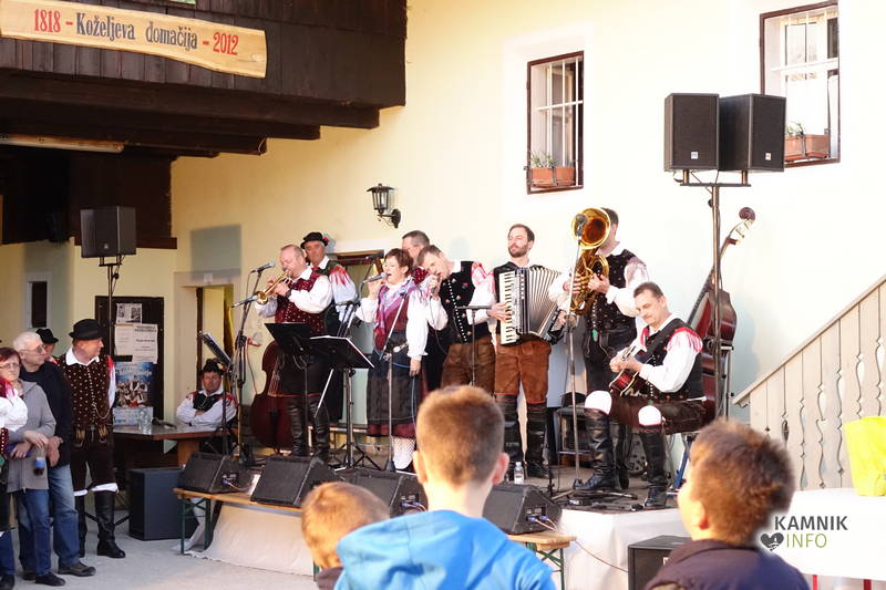 Dogajanje v kamrici je bilo očem sicer skrito, zagotovo pa je bilo vzdušje bolj poskočno na dvorišču Koželjeve domačije, kjer so zaigrali Slovenski muzikantje in se zavrteli člani Folklorne skupine Komenda, medtem ko je Podokničar vmes na okno parkrat prišel zajet sapo.