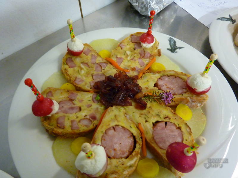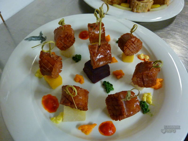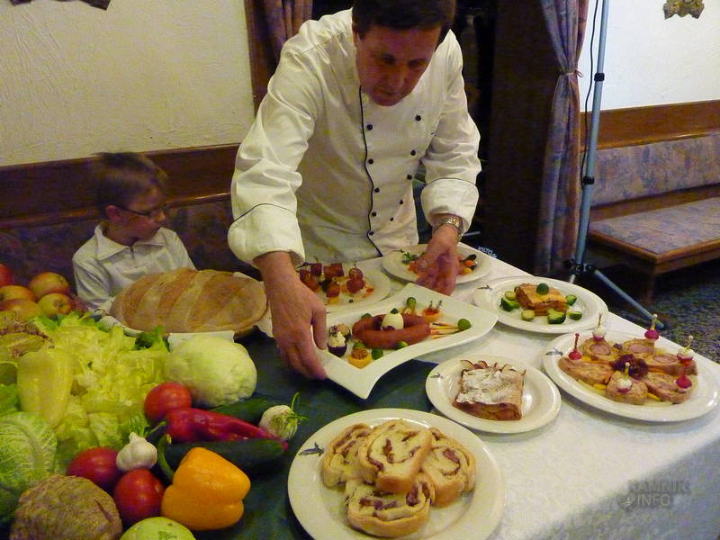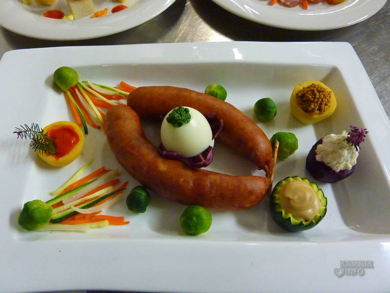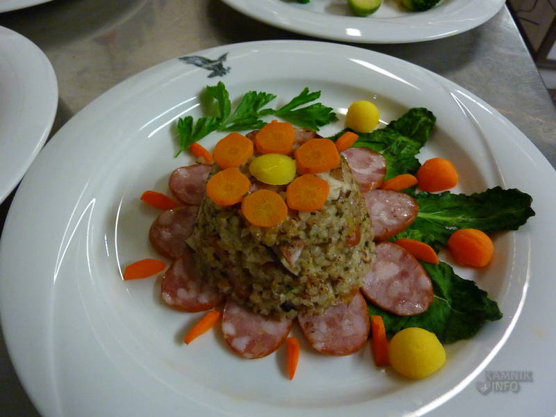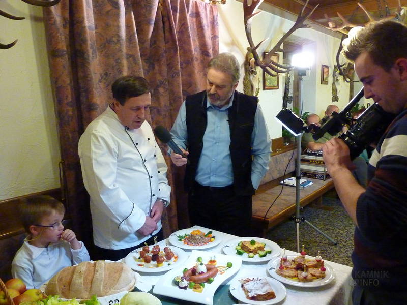 S kranjskimi klobasami, pa je čaral domači kuharski mojster Janez Uršič, ki je dokazal, da je kranjsko klobaso moč postreči tudi nekoliko drugače, kot zgolj s kajlo kruha in gorčico. Kranjsko klobaso je namreč spekel, pripravil z njo izjemno okusno lazanjo, špehovko, stahovško filo in ajdovo kašo, tako da smo kar nekoliko previdno zagrizli v sladico, domač višnjev zavitek, saj smo se bali, da bo kranjska klobasa tudi v njem. Klobase v zavitku sicer ni bilo, čeprav verjamemo, da bi si Stahov’ški Janez znal izmisliti tudi okusen zavitek s kranjsko klobaso.