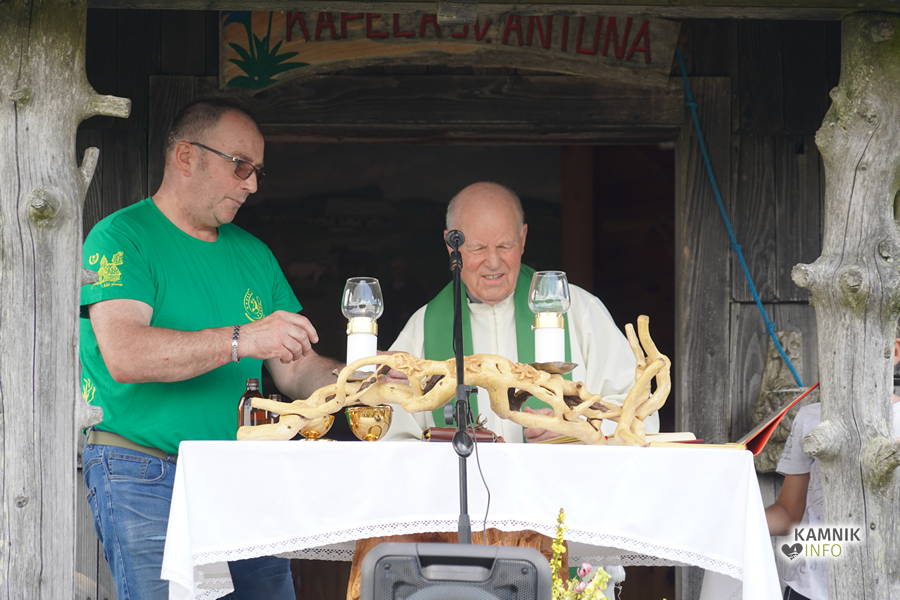 Na dogodku pa ni bilo poskrbljeno zgolj za telo, ampak tudi za dušo, za kar je poskrbel tuhinjski dušni pastir Nikolaj Štolcar, ki je v kapelici sv. Antona Puščavnika, priljubljenega zavetnika živinorejcev, svinjskih pastirjev, mesarjev, pekov in tudi gasilcev, daroval sveto mašo s priprošnjo, da bi se vse živo v miru in varno paslo tako po planini in dolini.