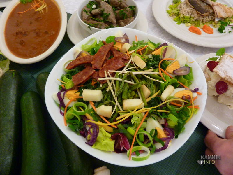 Bolj malo razumevanja za to, da se bo moral Podokničar že v kratkem času spraviti tudi v kopalke, brez da bi ga na plaži nadlegovali naravovarstveniki, ki bi ga hoteli na vsak način vreči nazaj v morje, pa kaže kuharski mojster Janez, ki je tudi za tokratno odajo nakuhal in napekel celo mizo dobrot. Glede na to, da je pred vrati turistična sezona, je pripravil nekaj lokalno obarvanih jedi, ki se bodo najbrž uvrstile v ponudbo Okusi Kamnika, glede na to, da se je pred kratkim začela tudi ribiška sezona, pa so se na mizi znašle tudi postrvi pripravljene na različne načine. Kopalke gor, ali dol, rubrika »Njami-njami« je zakon, kajti človeku se sline pocedijo že samo ob ogledu slik.