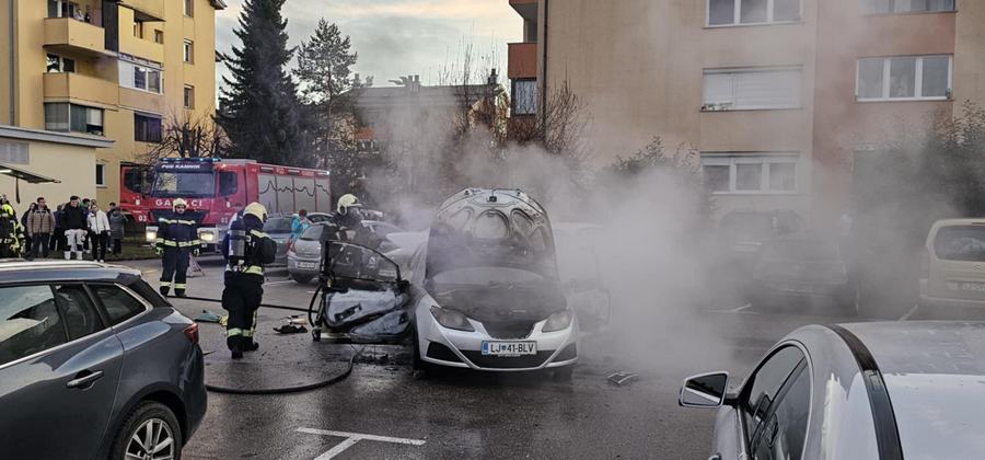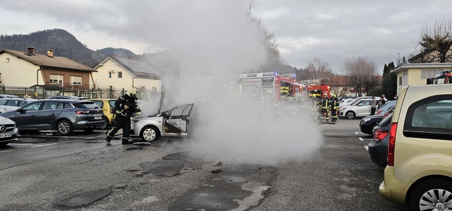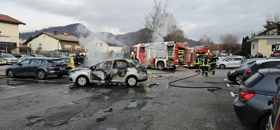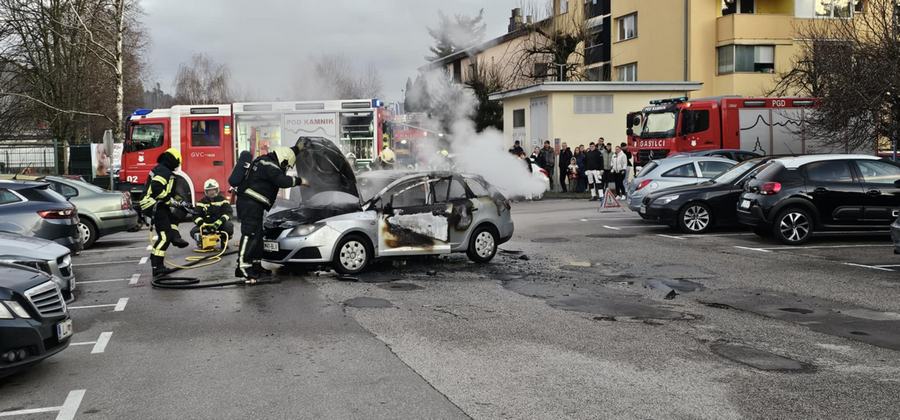 Na parkirišču pri stanovanjskih blokih na Klavčičevi ulici je zagorelo osebno vozilo, ki so ga ognjeni zublji, kljub hitremu posredovanju kamniških gasilcev, povsem uničili.