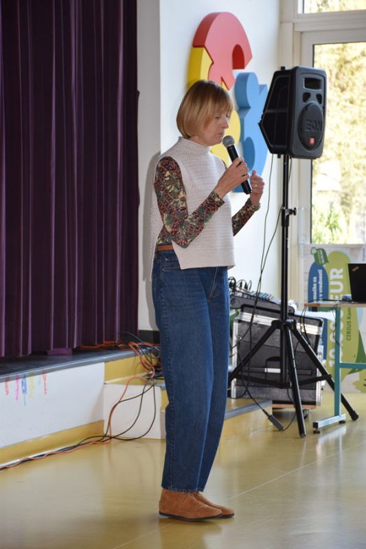 Obiskovalce je najprej prijazno pozdravila in nagovorila ravnateljica Osnovne šole CIRIUS Kamnik, Isabelle Morel Bera.