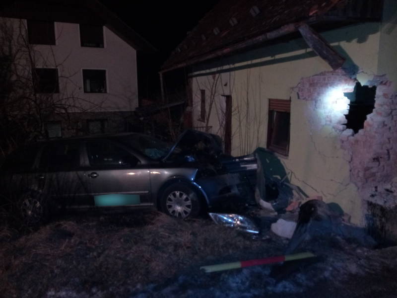 V Srednji vasi je v desnem ovinku, domnevno zaradi vožnje z neprilagojeno hitrostjo zapeljala na nasprotni vozni pas ter izven vozišča najprej trčila v odbojno ograjo, nato pa še naprej v stanovanjsko hišo.