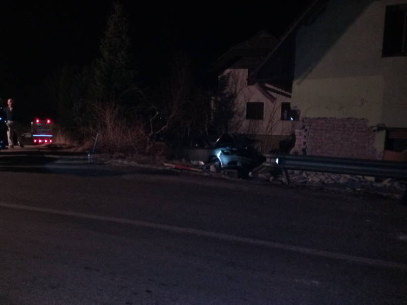 V Srednji vasi je včeraj zvečer prišlo do prometne nesreče, ki jo je, domnevno zaradi prevelike oz. neprilagojene hitrosti, povzročila 38-letna voznica osebnega vozila, ki je najprej trčila v odbojno ograjo, nato pa še v stanovanjsko hišo.