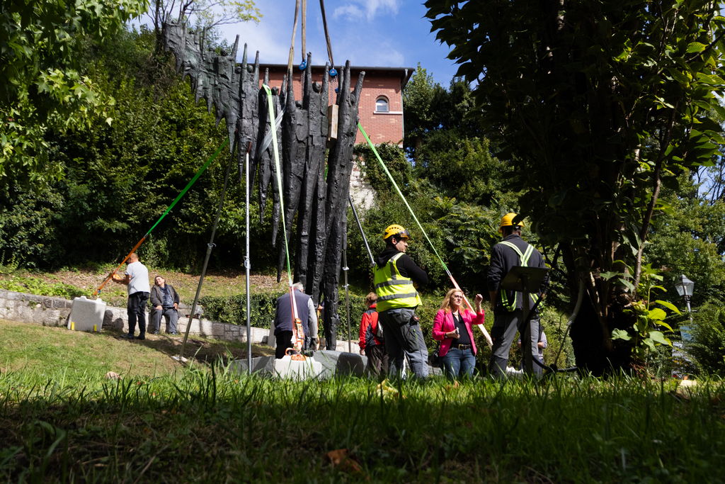 Po domala natanko leto dni trajajoči obnovi bronaste skulpture, ki je delo Draga Tršarja, se je spomenik revoluciji in padlim v Kamniku danes, temeljito obnovljen, znova vrnil na svoj prostor v parku Evropa.